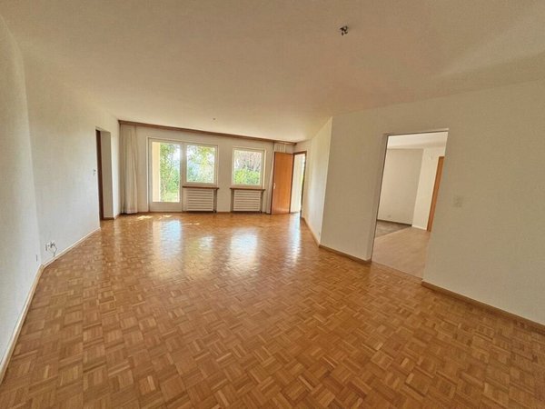 Per sofort oder nach Vereinbarung vermieten wir diese 4.5-Zimmer-Wohnung im ersten Obergeschoss einer einmaligen Liegenschaft auf dem Dornacher Hügel. Das Haus wurde 1964 vom Architekten Walter Keller erbaut und von der damaligen Eigentümerschaft in den Jahren 1998 bis 2000 umfassend modernisiert.