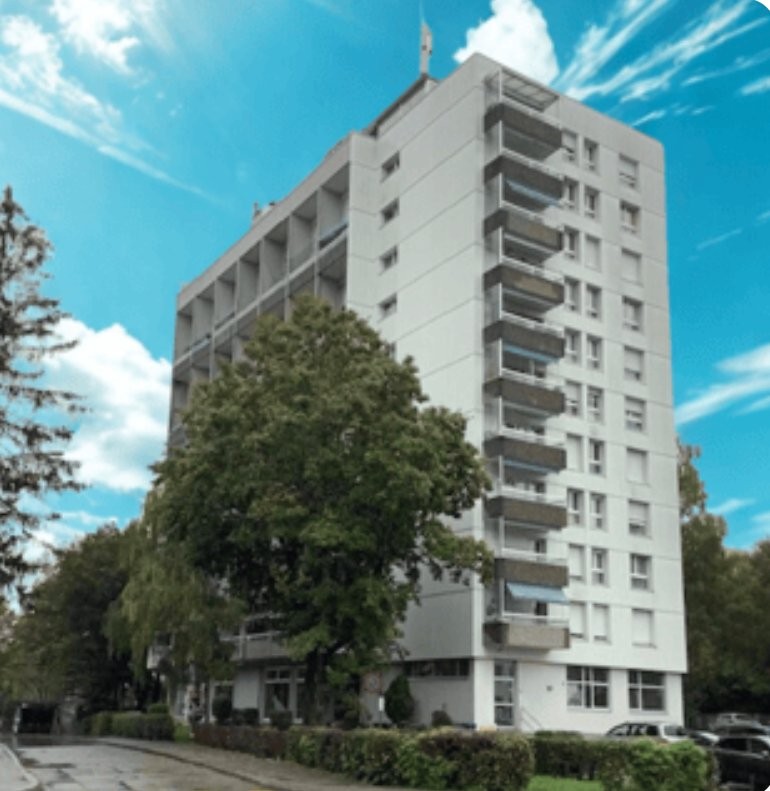 Die Wohnung ist sonnig gelegen und bietet eine ruhige Atmosphäre. Haustiere sind willkommen. Das mehrstöckige Wohngebäude ist von Bäumen und Pflanzen umgeben und fügt sich harmonisch in die grüne Umgebung ein.