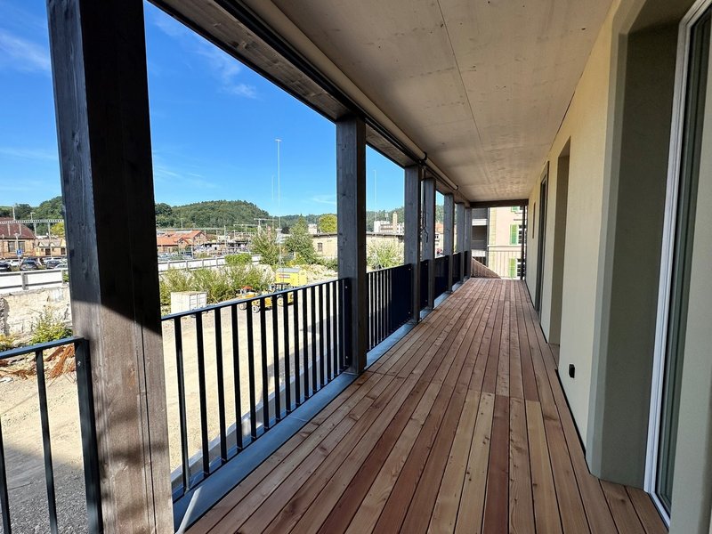 Alle Wohnungen profitieren von einem gedeckten, strassenabgewandten Balkon, der nach Norden ausgerichtet ist und einen gemütlichen Rückzugsort im Freien bietet.