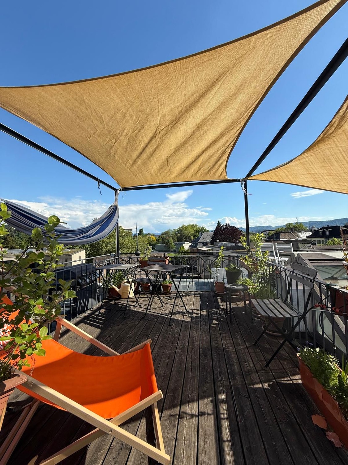 A real highlight is the large rooftop terrace with a great view over the city – perfect for relaxing or enjoying a sunny afternoon.