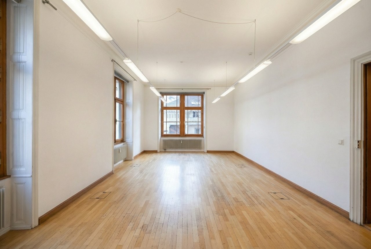 Die sorgfältig erhaltene historische Bausubstanz verbindet sich mit funktionalen, sofort nutzbaren Innenräumen zu einem stimmigen Gesamtbild. Grosszügige Raumhöhen, klare Grundrissstrukturen sowie grossflächige Fenster schaffen helle, ruhige Arbeitsräume mit hoher Aufenthaltsqualität und einer Atmosphäre, die Professionalität und Vertrauen vermittelt.