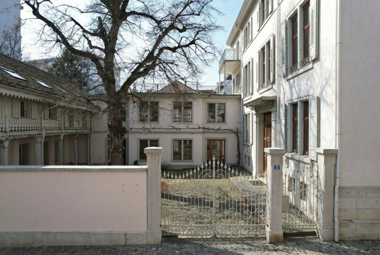 Die drei eigenständigen Gebäudeteile gruppieren sich um einen geschützten Innenhof und ermöglichen flexible Nutzungskonzepte. Repräsentative Empfangsbereiche lassen sich ebenso realisieren wie strukturierte Arbeitszonen oder diskrete Rückzugsräume. Die Lage an der St. Alban-Vorstadt vereint historische Atmosphäre mit hervorragender Erreichbarkeit sowie unmittelbarer Nähe zum Rhein und zur Basler Innenstadt.