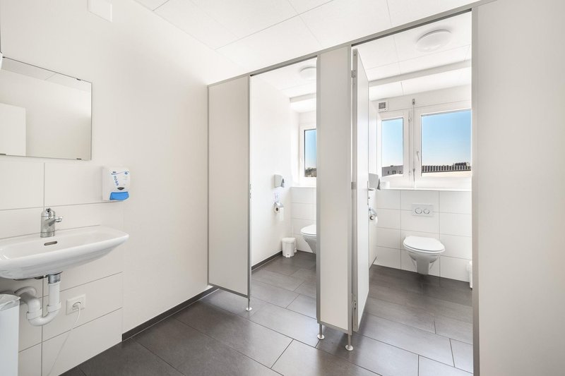 - Pflegeleichter Parkettboden in allen Büroräumen / Plattenboden in den Nasszellen
