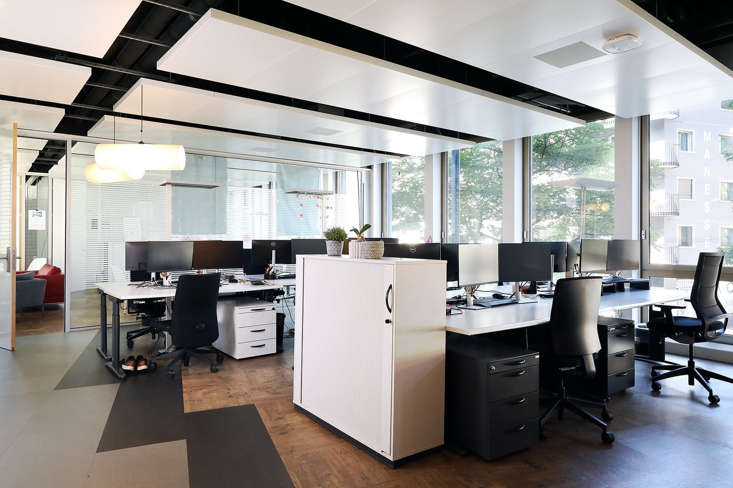 Top-Lage am belebten Manesseplatz : Ihr neues Büro liegt mitten im Stadtkreis Wiedikon, umgeben von urbanem Flair und historischer Atmosphäre. Fünf Strassen münden hier – Manessestrasse, Uetlibergstrasse, Stein‑, Hopfen- und Malzstrasse – und verleihen dem Platz seinen dynamischen Charakter. Das Quartier greift eindrucksvoll die Zürcher Geschichte auf und verbindet sie mit moderner Infrastruktur wie dem Sihlcity – dem Einkaufs‑, Wellness- und Freizeitzentrum.