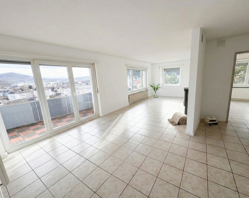 Diese aussergewoehnliche 3.5-Zimmer-Wohnung mit Penthouse-Charakter wurde urspruenglich als 4.5-Zimmer-Wohnung konzipiert und zu einer grosszuegigen 3.5-Zimmer-Wohnung umgestaltet. Durch den Zusammenlegungsumbau entstand ein besonders grosser, heller Wohn- und Essbereich mit Panoramablick ueber die Stadt Olten. Insgesamt bietet die Wohnung ein erhoehtes Wohngefuehl mit ca. 90 m2 hochwertiger Wohnflaeche.