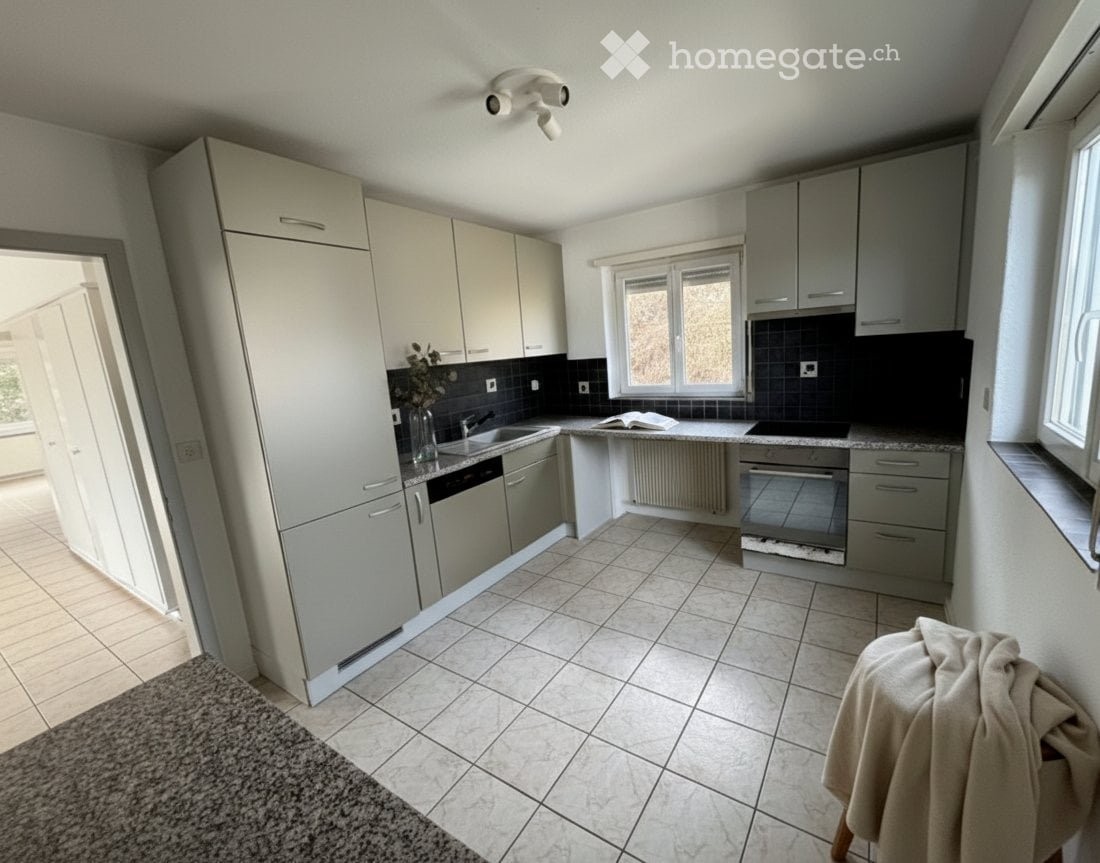 Die Wohnung befindet sich im obersten Geschoss und ueberzeugt durch viel Tageslicht, hohe Privatsphaere und eine ruhige, hochwertige Wohnatmosphaere. Der beigefuegte Grundriss zeigt die grosszuegige und ausgewogene Raumaufteilung. Auf Wunsch kann ein zusaetzliches Zimmer geschaffen werden, wodurch die urspruengliche 4.5-Zimmer-Struktur wiederhergestellt werden kann.