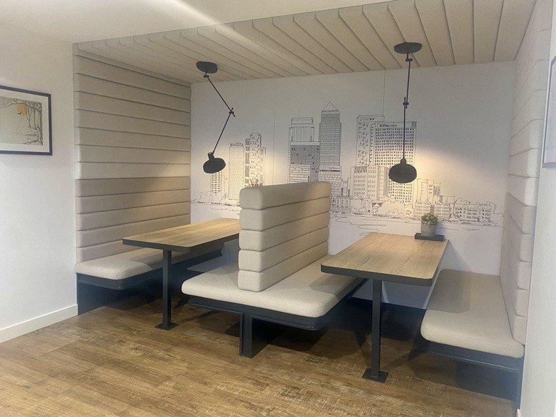 Dieses Angebot umfasst 30 m² möblierte private Bürofläche und 75 m² Gemeinschaftsflächen: Besprechungsräume, offener Coworking-Bereich, Lounge, Kaffeeküche und Empfangsbereich mit Büroausstattung.