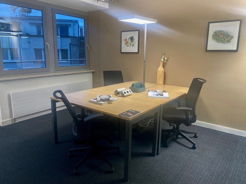 Erhalten Sie Zugang zu einem hellen und inspirierenden Büroraum, der darauf ausgelegt ist, Teams von 5 Personen optimal bei ihrer Arbeit zu unterstützen.
