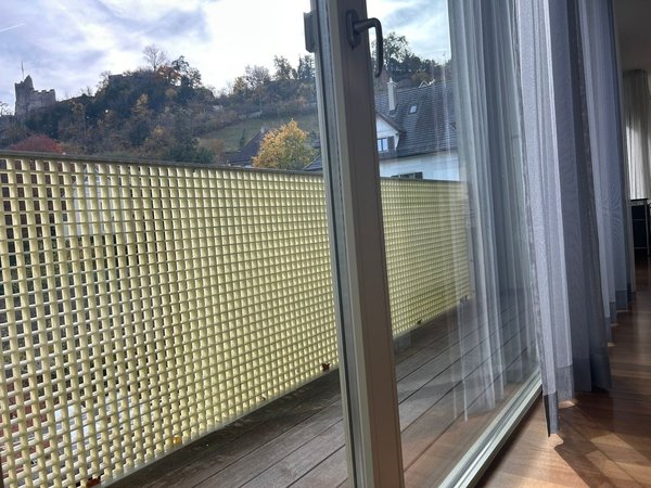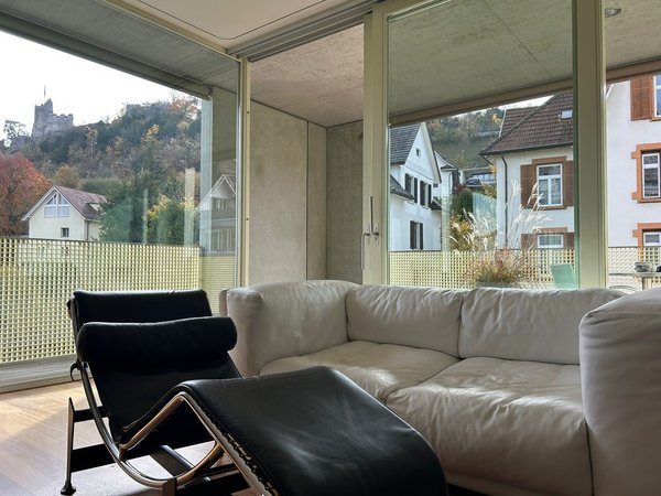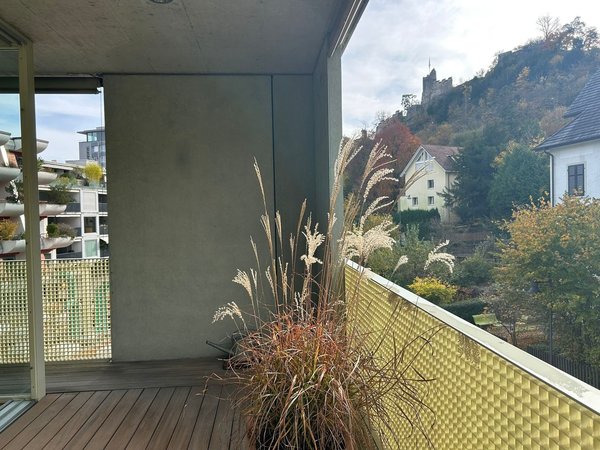 Die Wohnung verfügt über einen attraktiven Grundriss und einen grosszügigen Balkon mit direktem Blick auf die Ruine Stein.