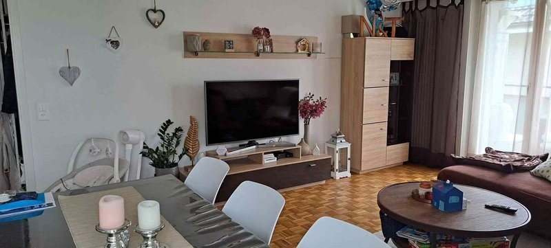 Zur Wohnung gehören auch ein Keller, sowie eine Waschmaschine und ein Wäschetrockner zur gemeinsamen Benutzung im Haus (fester Waschtag). Ein Parkplatz für Ihr Fahrzeug ist ebenfalls vorhanden und muss dazu gemietet werden für Fr. 50. Das Haus ist kinderfreundlich und bietet genügend Raum für eine kleine Familie.