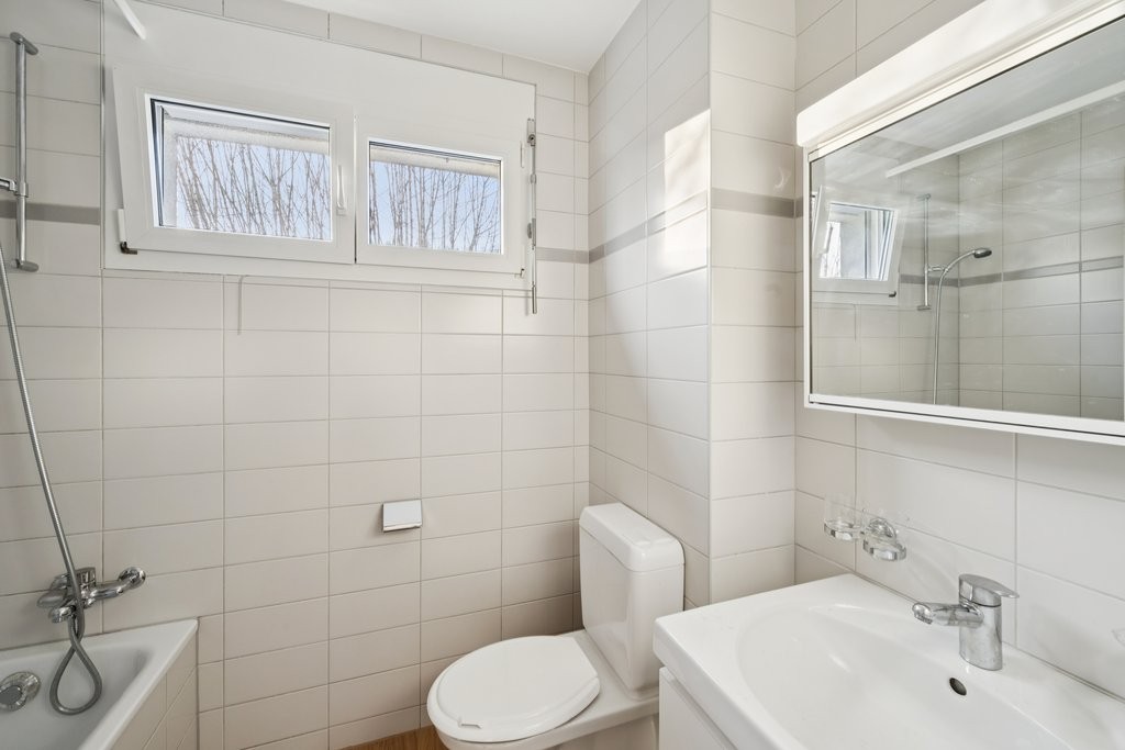 - Badezimmer mit WC, Lavabo, Spiegelschrank, Badewanne und Tageslicht