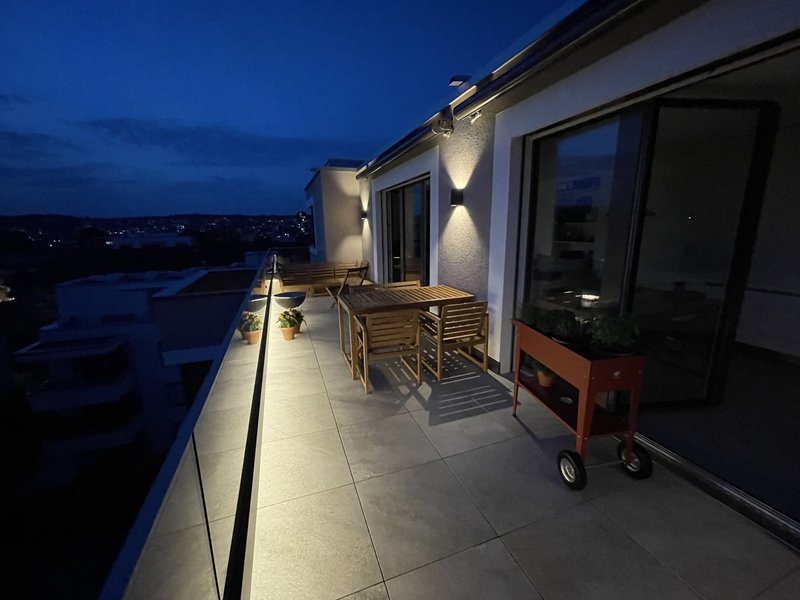 Privater Balkon: Grosszügige Terrasse mit Abendblick und (optionaler) LED-Beleuchtung, perfekt für entspannte Stunden im Freien