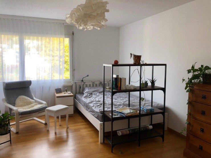 • Dein Zimmer wird 16.1 m² gross sein, mit hübscher Aussicht, Parkettboden und einem Einbauschrank.