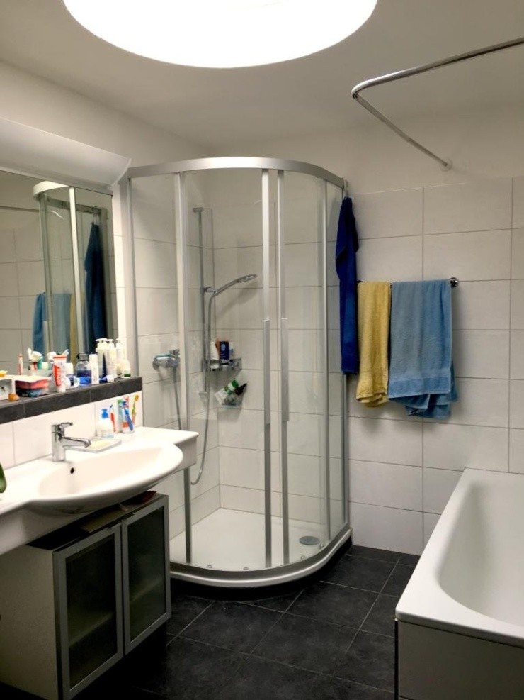 Badewanne und Duschkabine, ein 2. separates WC, eine 70 m2 Dachterrasse, Kellerabteil