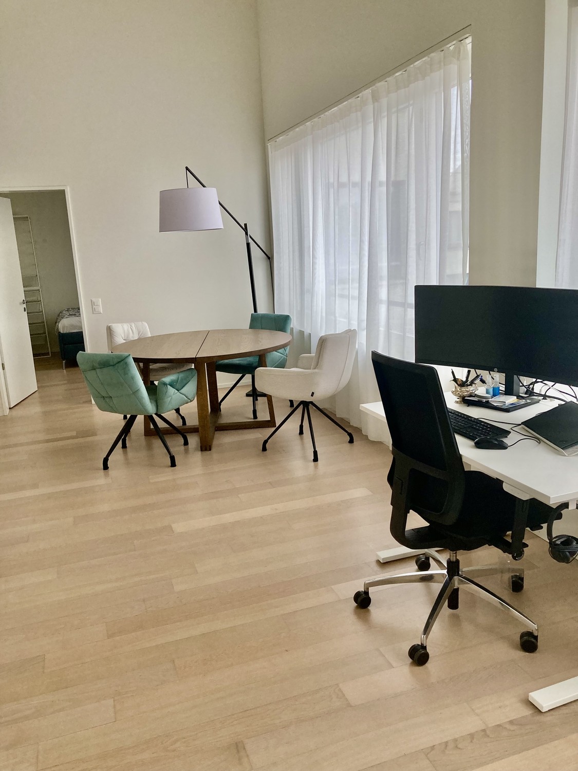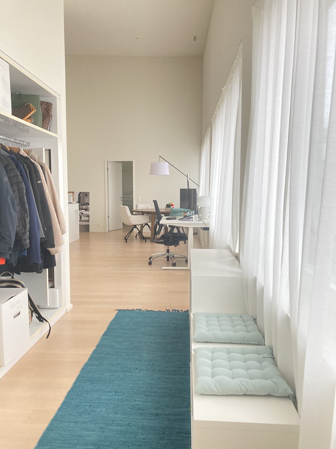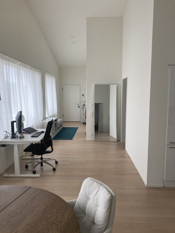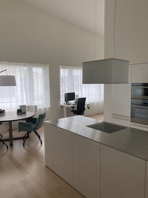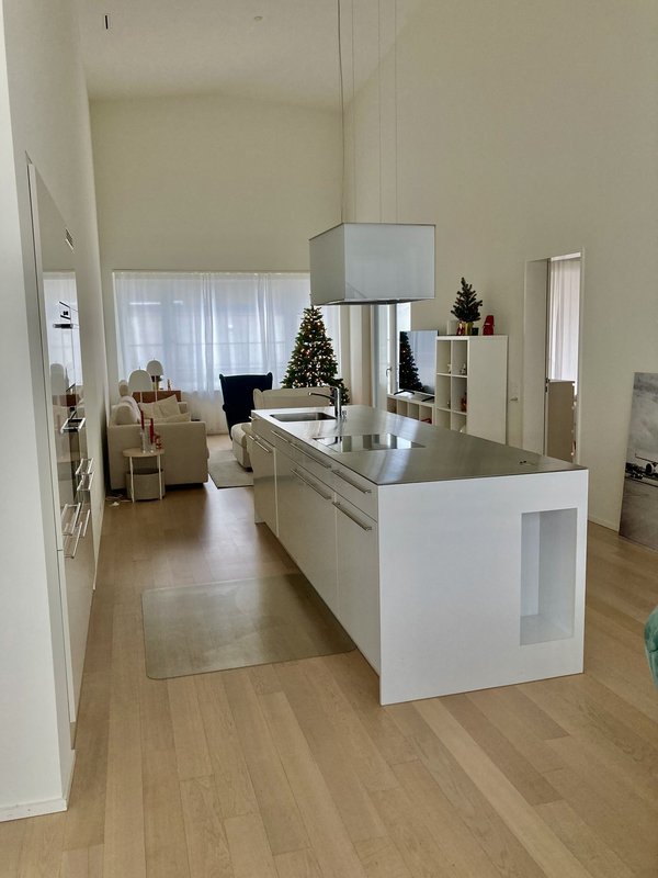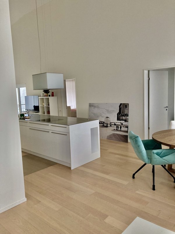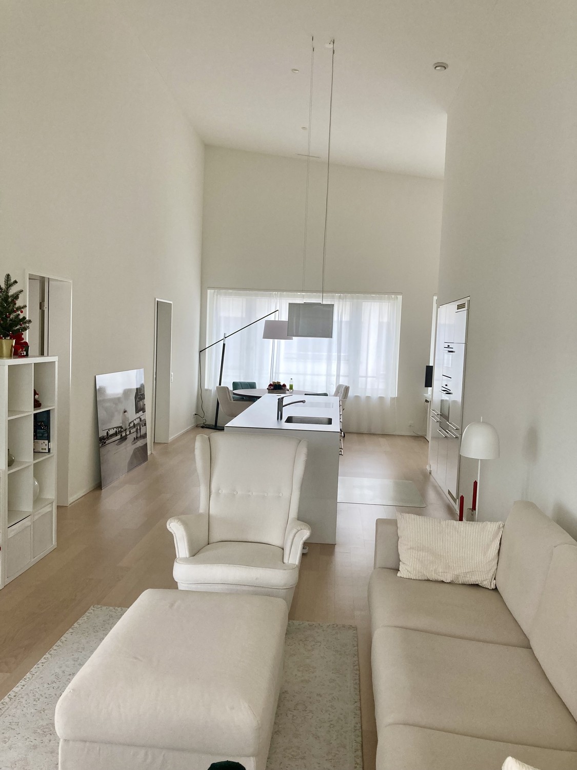 Diese extrem ruhige Wohnung im obersten Stockwerk über dem Shopping-Center Archhöfe bietet sehr hohen Komfort mit Raumhöhen von teilweise bis zu 5,5 Meter hohen Decken.