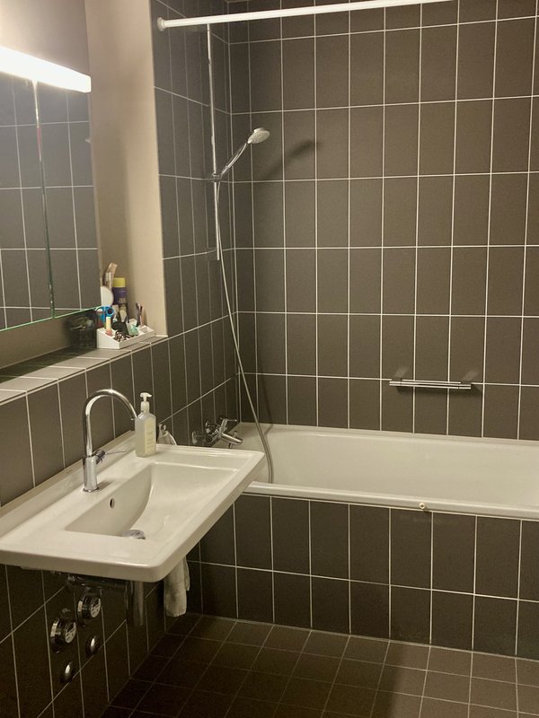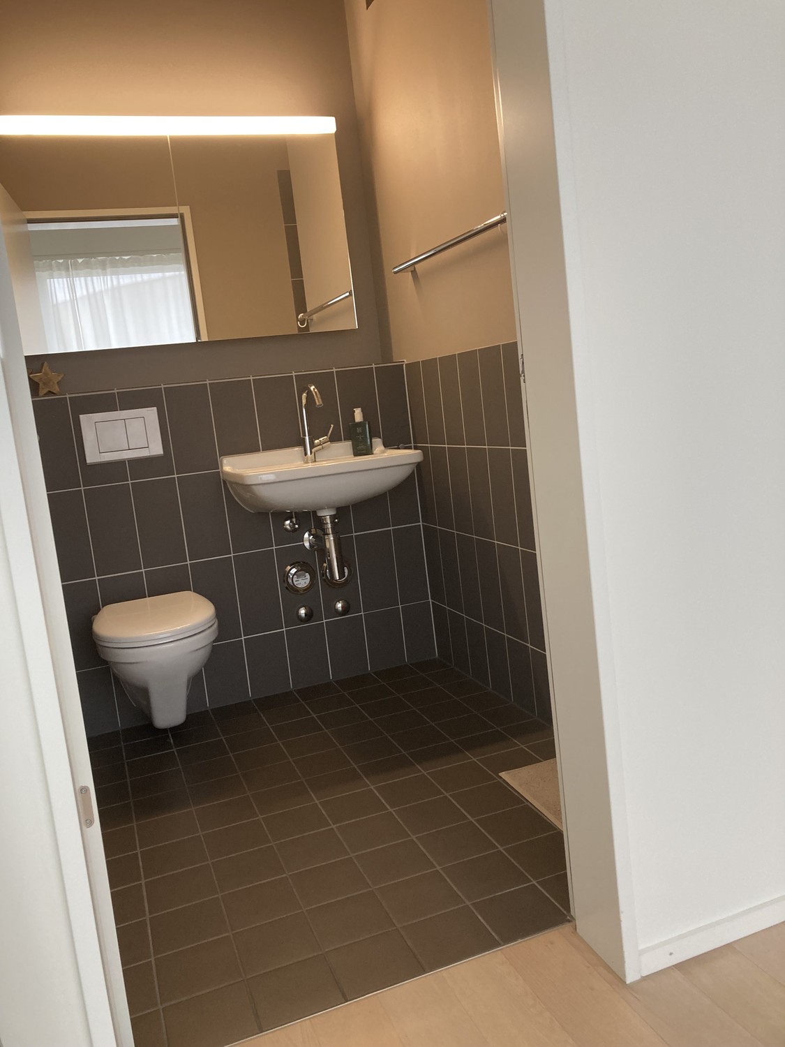 2 Badezimmer; 1x WC und Dusche; 1x WC und Badewanne (extragrosse Badewanne).