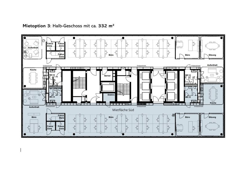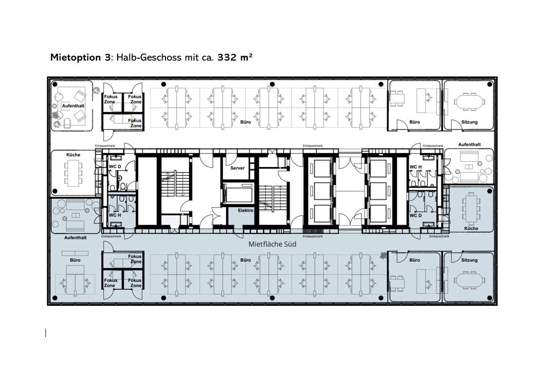 Mietoption 3: 332m² Halb-Geschoss Süd
