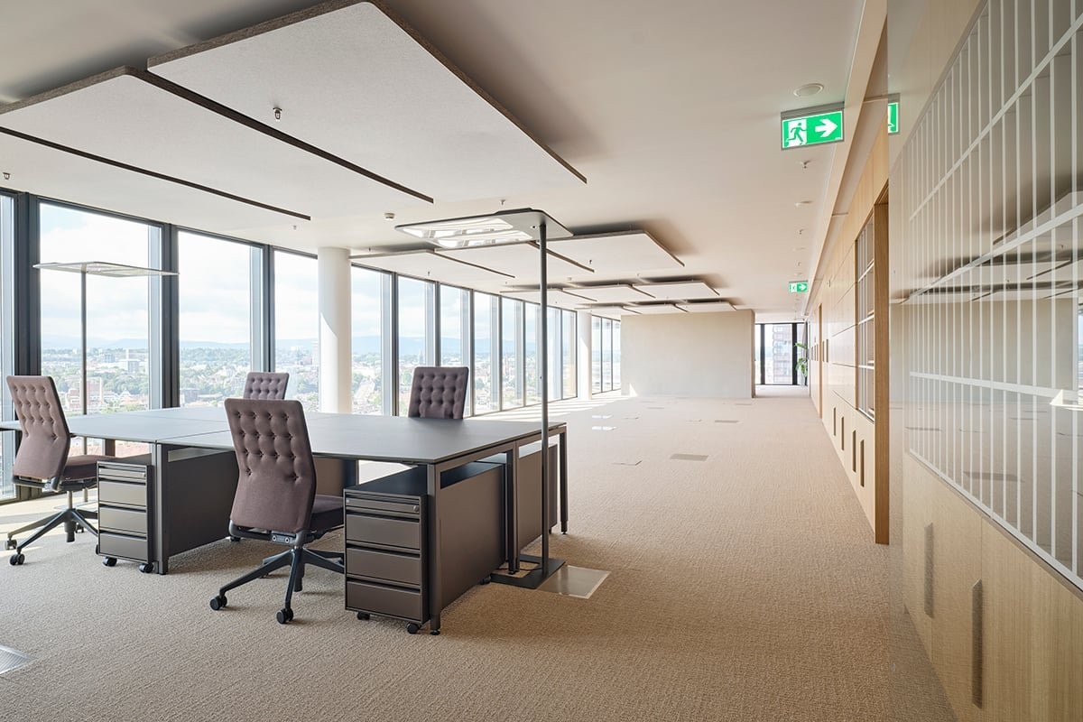 Die verfügbare Fläche im 29. OG von 332 m² bis 669 m² kann in hochwertigem Vollausbau angemietet werden und bietet eine ausgewogene Kombination aus offenen Raumstrukturen und Einzelbüros.