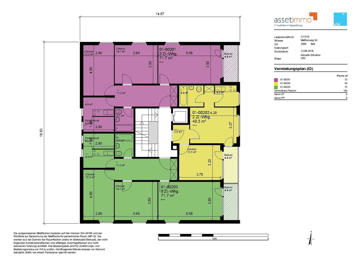Zusätzlich kann, nach Verfügbarkeit eine Garage für Fr. 140.00/Monat, ein Einstellhallenplatz für Fr. 115.00/Monat oder ein Aussenparkplatz für Fr. 55.00/Monat dazu gemietet werden.