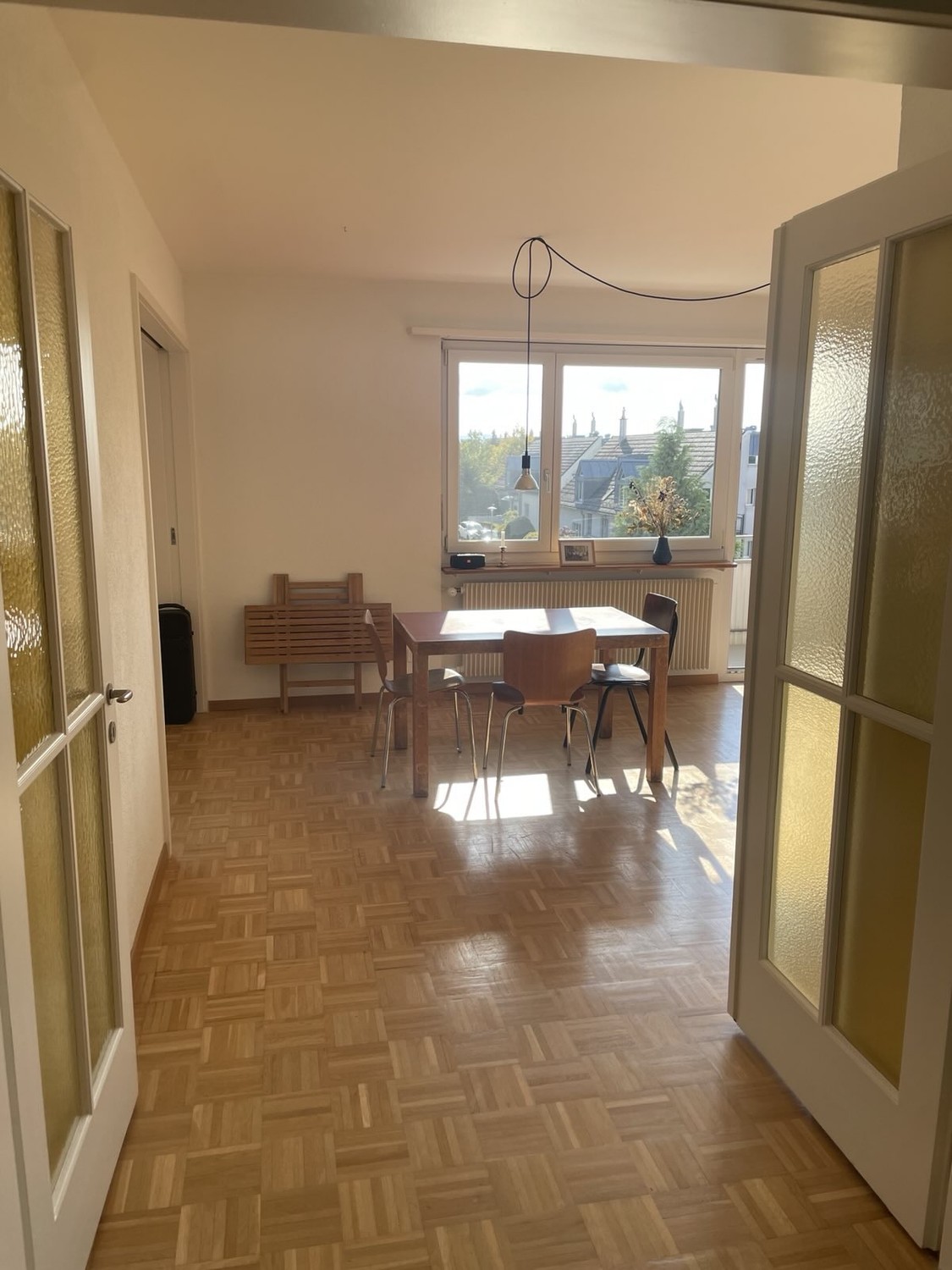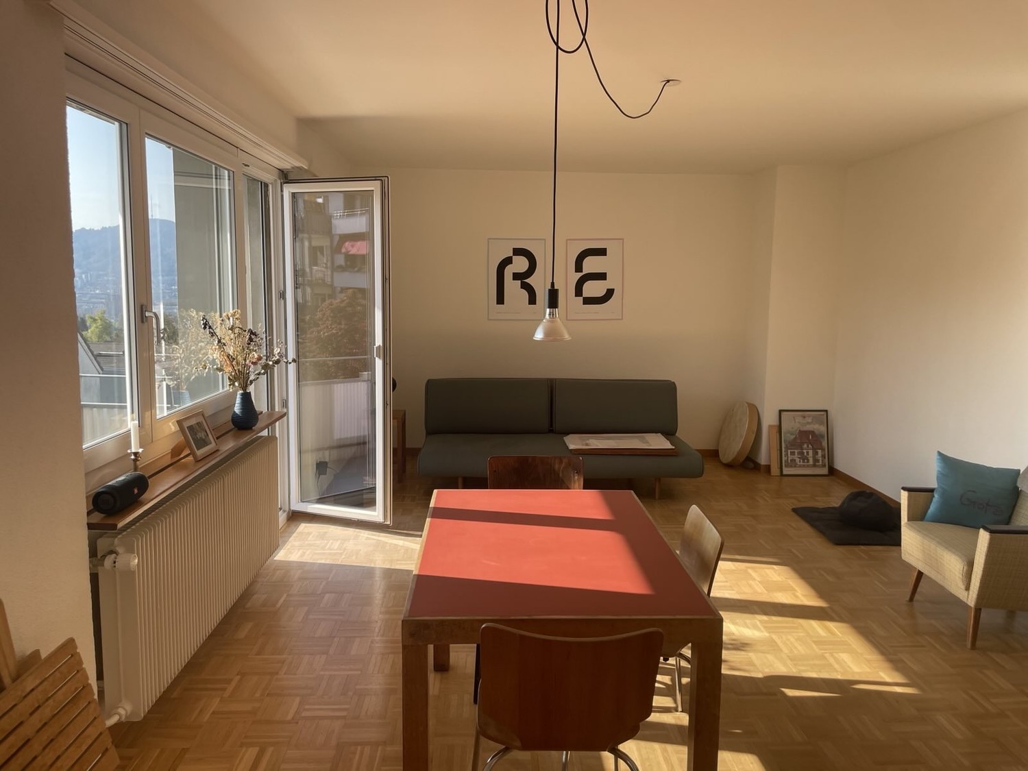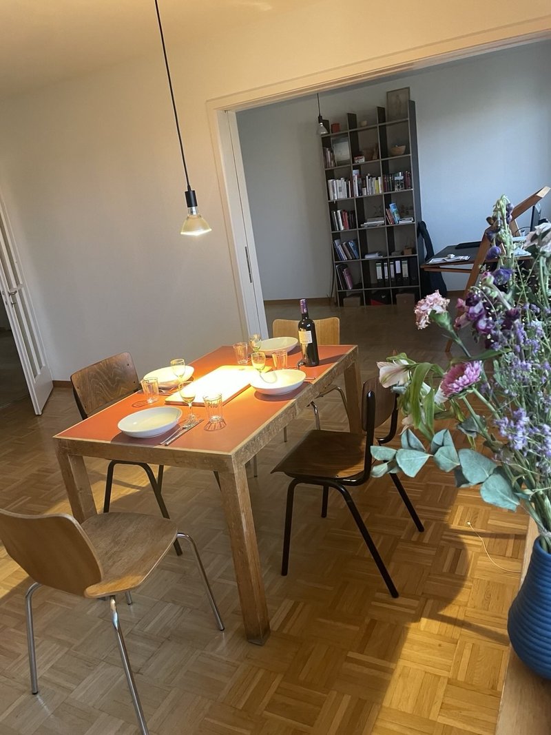 The apartment is located on a quiet side street on Hönggerberg (District 10) with a stunning view over Zurich. Nearby you’ll find ETH, the forest and green areas for walks, sports, or working out at the ASVZ gym at ETH.