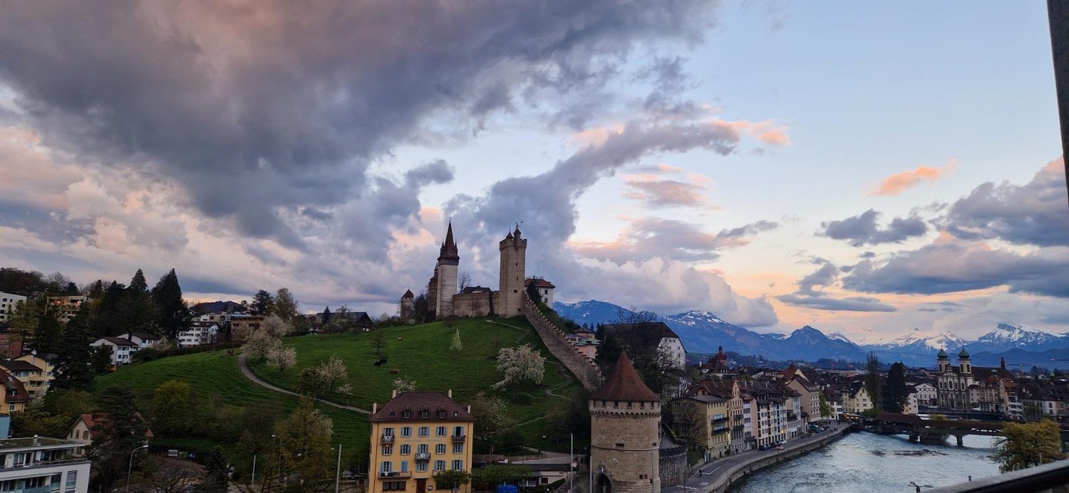 Geniesse Luzern von seiner schoensten Seite in dieser moeblierten 2.5-Zimmer-Wohnung im 8. Stock mit atemberaubender Aussicht auf die Reuss und die Museggmauer. Vom Schlafzimmer und der Kueche aus hast du einen herrlichen Blick auf das Chateau Guetsch. Wohnungsdetails:
