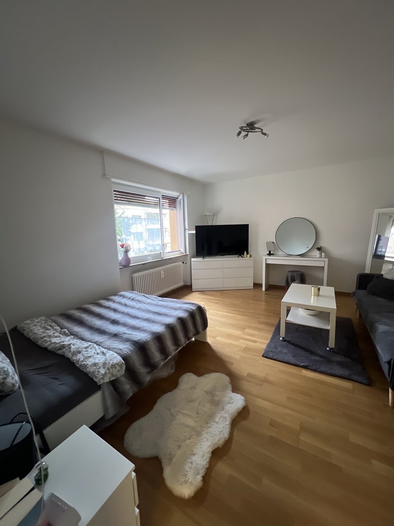 Die 1-Zimmer-Wohnung überzeugt durch ihre zentrale Lage, ideal für Studierende. Mehrere Universitäten sind schnell und unkompliziert erreichbar, ebenso die Innenstadt. Die Tram hält direkt vor der Haustür und bringt dich ohne Umsteigen ins Stadtzentrum – und von dort aus auch direkt an den Rhein, perfekt für Spaziergänge oder entspannte Abende.