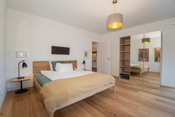 Das zweite Schlafzimmer verfügt über ein weiteres 180cm Bett mit einem Kleiderschrank.