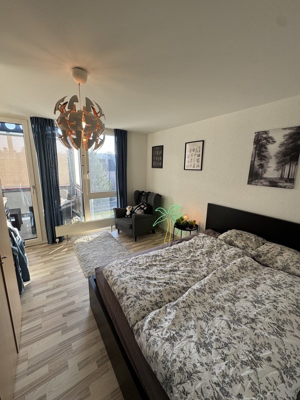 Ab dem 1. Februar 2026 wird in meiner großzügigen 3 ½-Zimmer-Maisonette-Wohnung (verteilt auf zwei Etagen) ein schönes, helles Zimmer frei. Das Zimmer ist etwa 16 qm gross und verfügt über einen direkten Zugang zu einem der zwei Balkone – perfekt für sonnige Morgenstunden oder entspannte Abende.