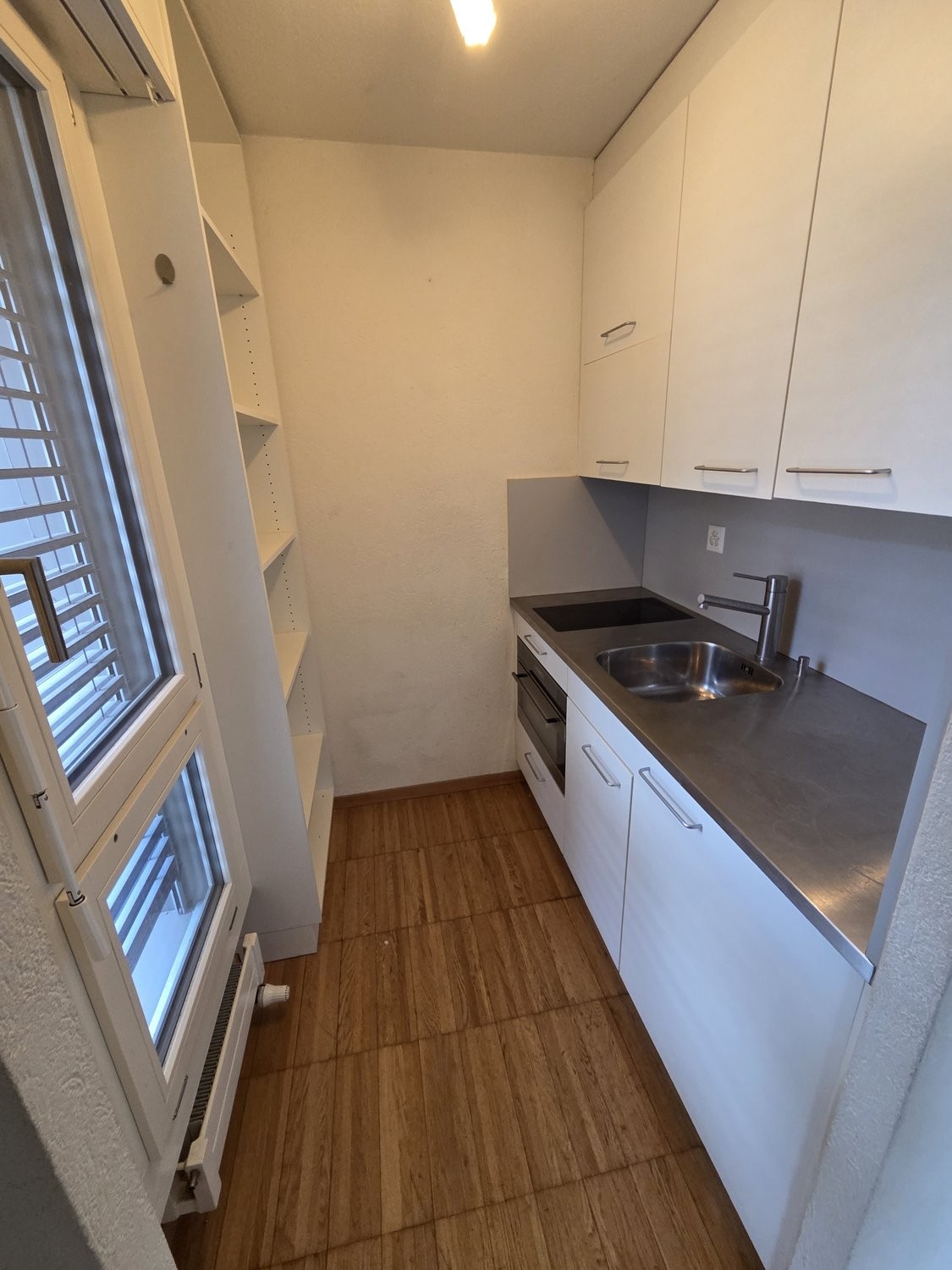 - Korridor mit Einbauschrank - Dusche und WC mit Lavabounterbaukommode - Abgetrennte Küche mit Glaskeramikkochfel, Backofen und Regal - Parkettboden - Reduit - Kellerabteil - Lift