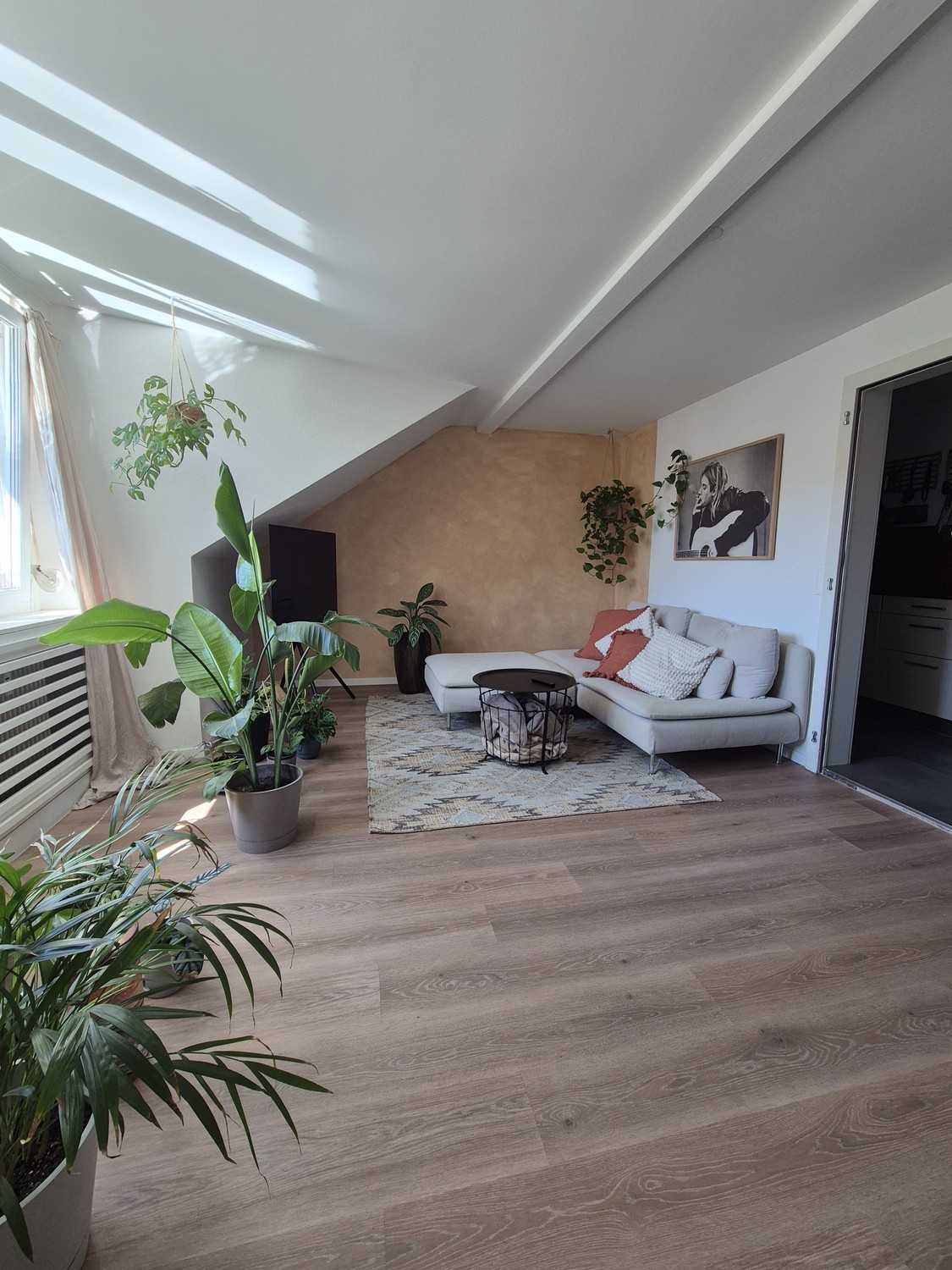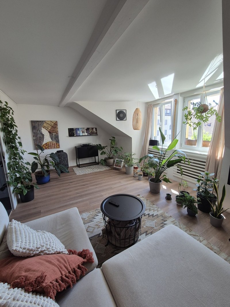 Die Wohnung ist lichtdurchflutet, stilvoll eingerichtet und bietet eine warme, wohnliche Atmosphäre – eine grüne Oase mitten in der Stadt, mit vielen gepflegten Zimmerpflanzen, die für ein angenehmes Raumklima sorgen.