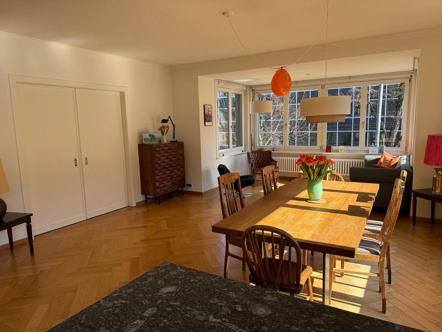 Wir suchen eine Mitbewohnerin für den Zeitraum vom 19.04. - 15.05.2026. Das Zimmer ist ca. 25 m2 gross, mit Zugang auf den Balkon. Bett 1.40m und Schreibtisch, sowie Kommode/Schrank sind vorhanden. Die Wohnung hat einen schönen grossen Wohn- und Küchenbereich, der gemeinsam genutzt wird. Auch das Bad wird geteilt.