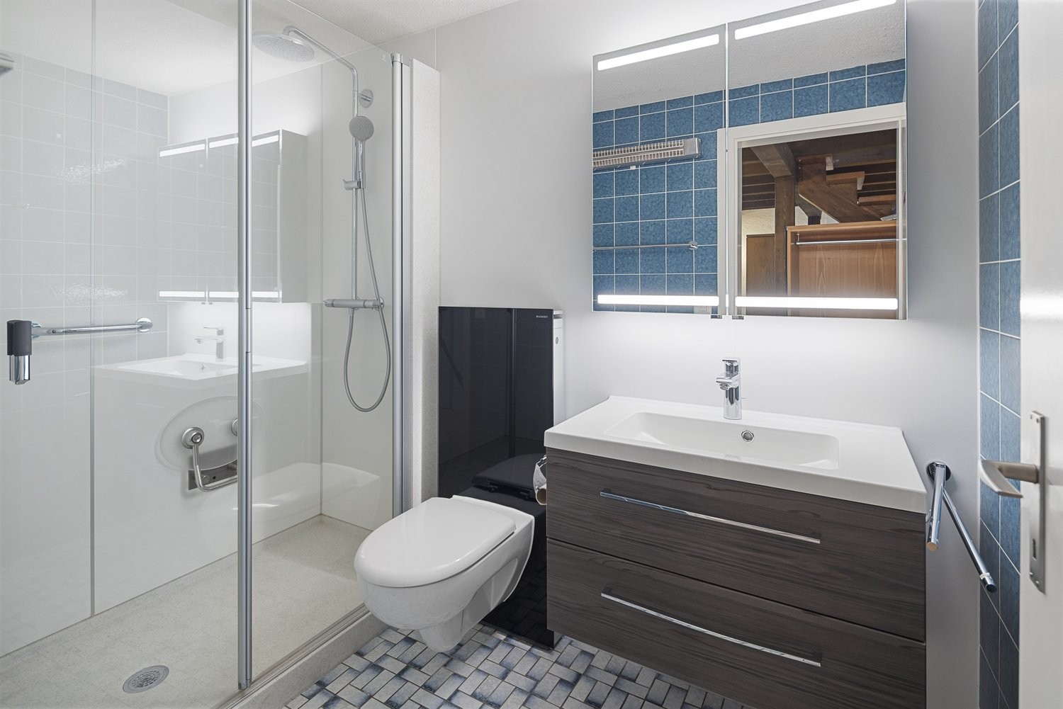 Im Erdgeschoss befinden sich eine grosse Garage mit elektrischem Tor sowie drei Aussenparkplätze. Auch der Heizraum, ein Vorraum und die gemeinschaftliche Waschküche sind auf dieser Etage zu finden. Das Haus ist zusätzlich mit einer neuen Entkalkungsanlage und einem Treppenlift ausgestattet.