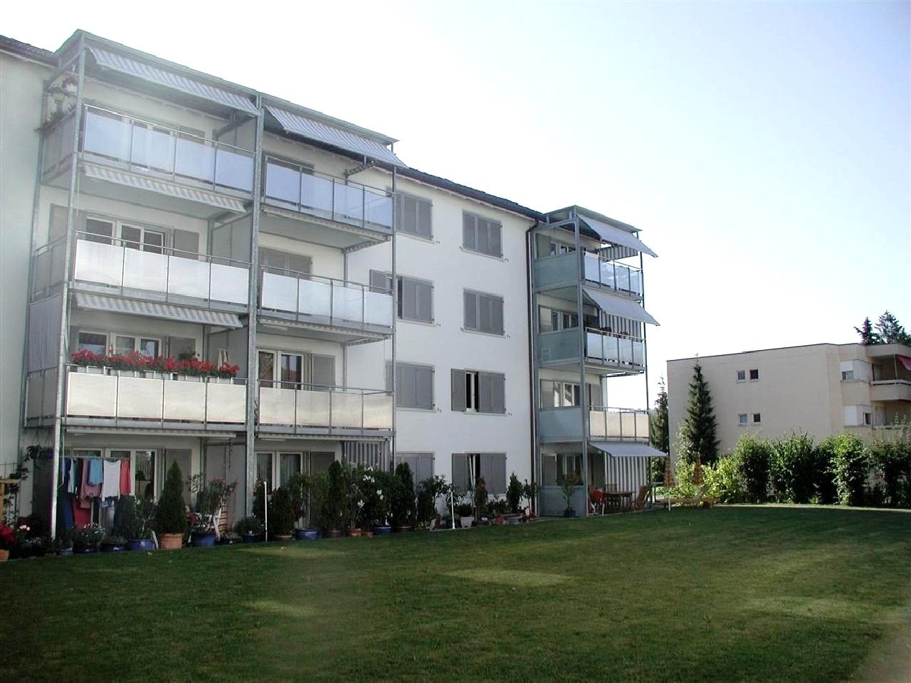 - Grosszügiger und sonniger Balkon mit Wind-/Sichtschutz.