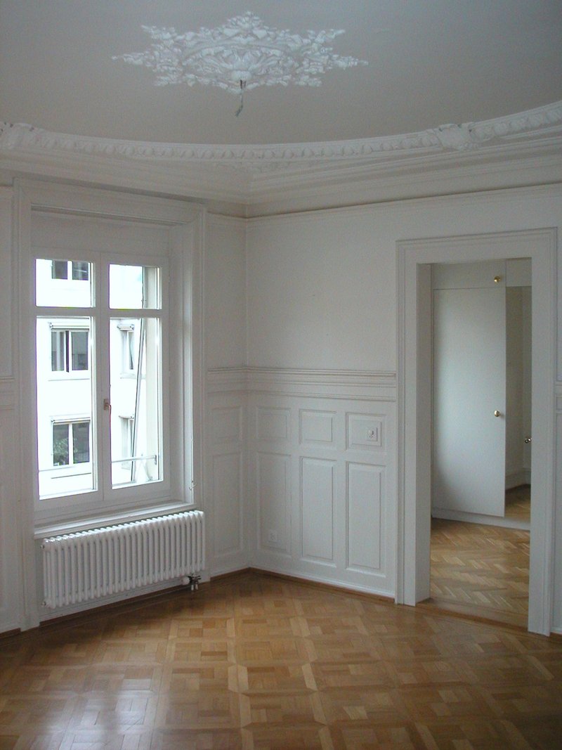 In unmittelbarer Nähe zum Bellevue und dem Zürichsee, direkt beim Bahnhof Stadelhofen, vermieten wir eine 6.5-Zimmer-Altbauwohnung aus dem Jahr 1896.