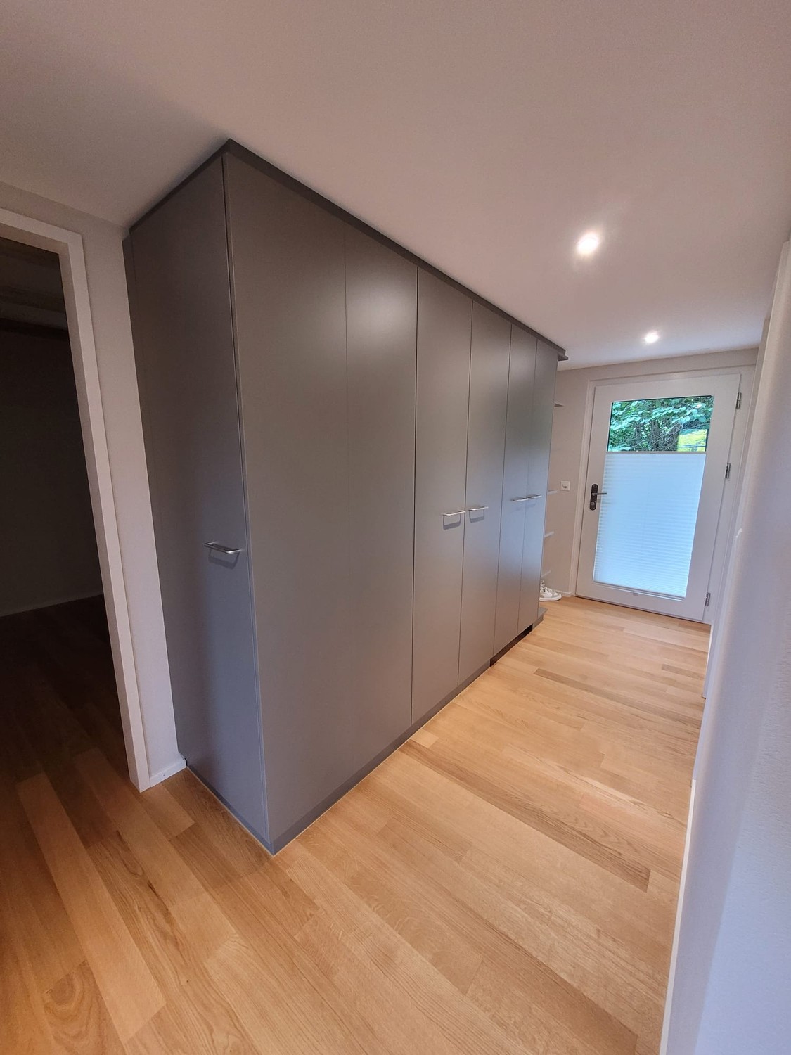 Im Schlafzimmer befindet sich ein grosser, neuwertiger Eckkleiderschrank, welcher auf Wunsch erworben werden kann. Dieser wurde beim Einzug neu gekauft und verbaut.