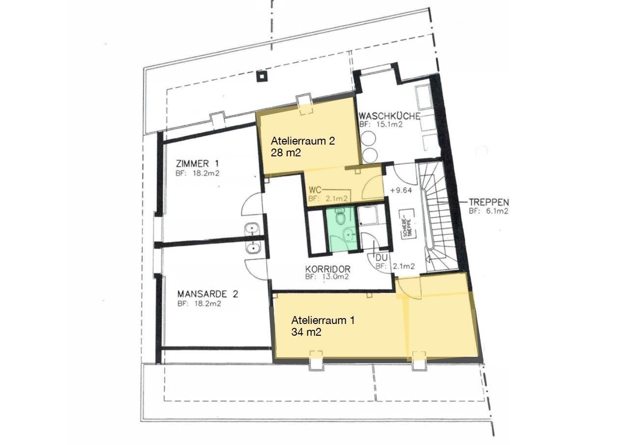 - 2 Räume mit total 62 m2, jeweils mit Dachschräge