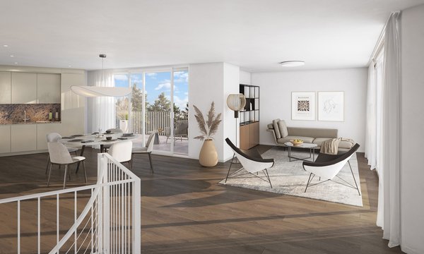 Die grosszügigen 2½- bis 4½-Zimmer-Maisonettewohnungen mit Wohnflächen von 53m² bis 162m², verfügen über private Aussenräume, raumhohe Verglasungen und Raumhöhen von 2.50m, die ein besonderes, offenes Wohngefühl vermitteln. Der hochwertige Innenausbau erfüllt höchste Ansprüche. Wählen Sie aus exklusiv entwickelten Designlinien, kombinieren Sie Materialien nach Belieben oder gestalten Sie den Innenausbau individuell - ganz nach Ihrem Stil. Zur Verwirklichung Ihres Projekts steht ein adäquates Budget zur Verfügung. Selbstverständlich sind alle sechs Einheiten direkt via Lift von der Tiefgarage aus erschlossen - ganz so, wie es sich für Ihr neues Zuhause gehört.