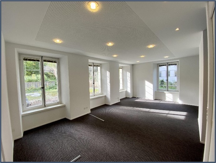 Die grosszügig geschnittenen Büroräume bieten viel Tageslicht und schaffen eine angenehme Arbeitsatmosphäre. Eine bestehende Netzwerkverkabelung ist vorhanden und kann individuell angepasst werden. Die Räume sind mit einem Teppichboden ausgestattet, während die Allgemeinflächen mit pflegeleichten Fliesen überzeugen. Eine Teeküche sowie moderne Sanitäranlagen runden das Angebot ab.