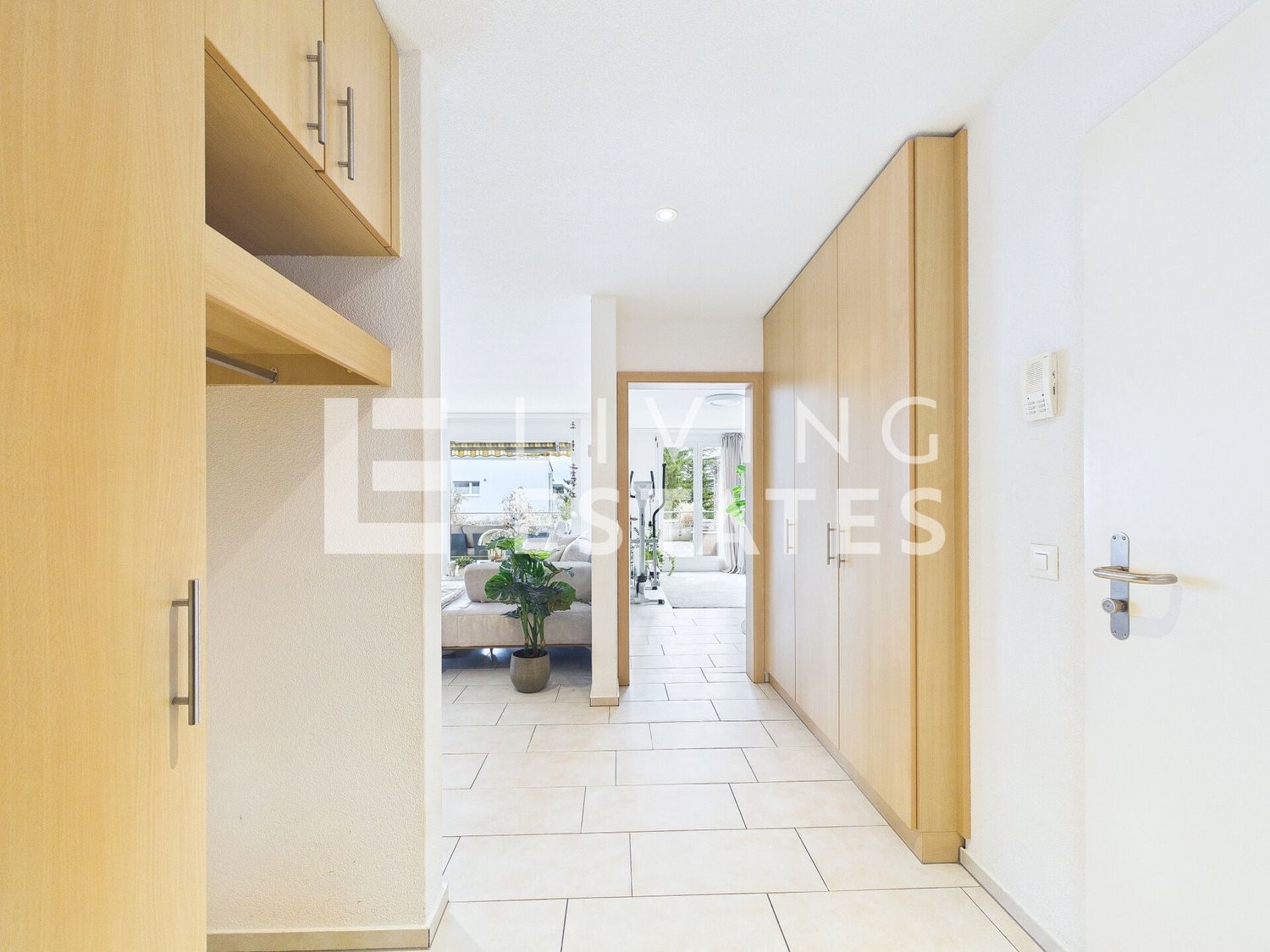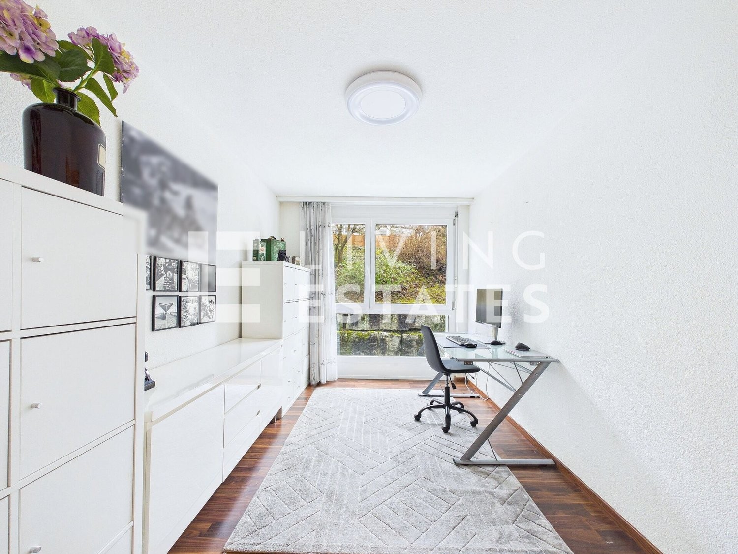 Der praktische Eingangsbereich mit Garderobe und Reduit heisst Sie willkommen und führt Sie in den sonnenverwöhnten Wohn-/Essbereich mit offener Küche. Die grosszügige Fensterfront schafft ein helles Wohnambiente und öffnet sich zur weitläufigen Terrasse. Die Küche überzeugt mit grosszügigen Arbeitsflächen, viel Stauraum und zeitgemässer Ausstattung. Angrenzend an den Wohnbereich befindet sich ein Zimmer mit direktem Terrassenzugang - ideal als Büro oder Gästezimmer. Im hinteren, privaten Bereich liegen drei weitere Schlafzimmer sowie die beiden Nasszellen. Dank des idealen Grundrisskonzepts und grosser Fenster bieten die Zimmer vielfältige Nutzungsmöglichkeiten und lassen Wohnträume wahr werden. Das grosse Badezimmer mit freistehender Badewanne sowie die separate Nasszelle mit kompakter Dusche sorgen für Wohlfühlmomente im Alltag.