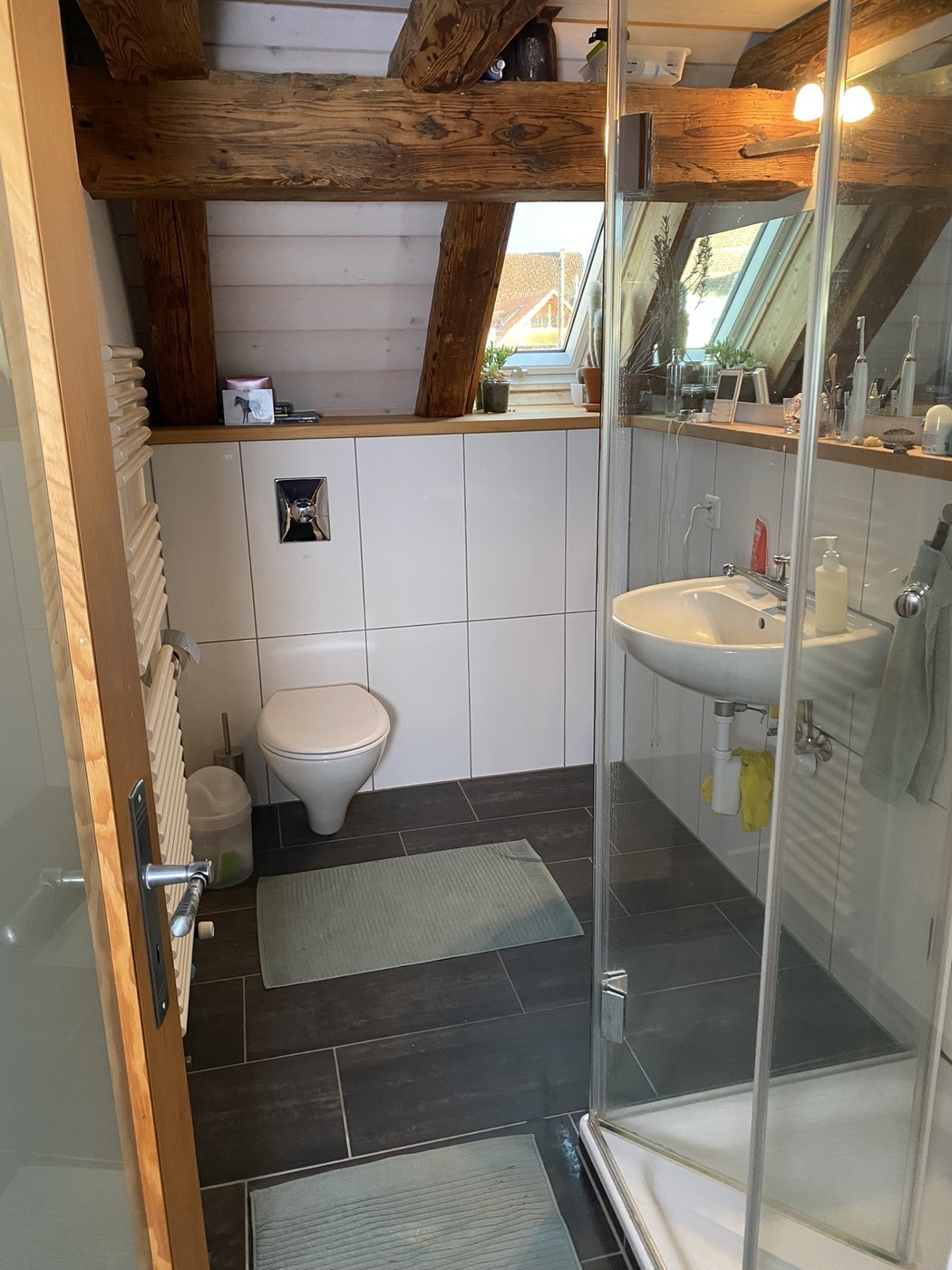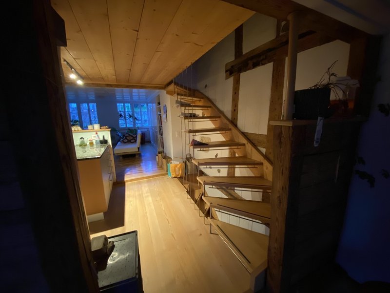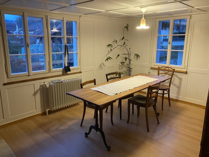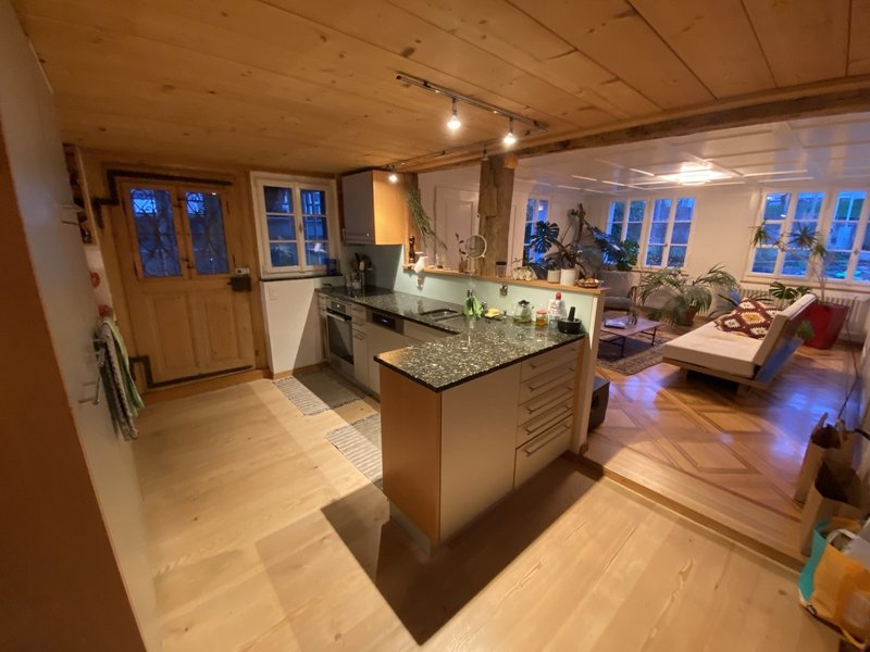 Zu vermieten ab Mai 2026: Charmante Einfamilienhaushälfte mit modernem und traditionellem Flair! Dieses wunderschöne Haus wurde im Jahr 2001 vollständig renoviert und seither gut unterhalten (u.a. neu Heizung und Fenster 2023), aber seine 200-jährige Geschichte ist immer noch spürbar. Die Kombination aus modernen Annehmlichkeiten und antikem Charme schafft eine einzigartige Atmosphäre.