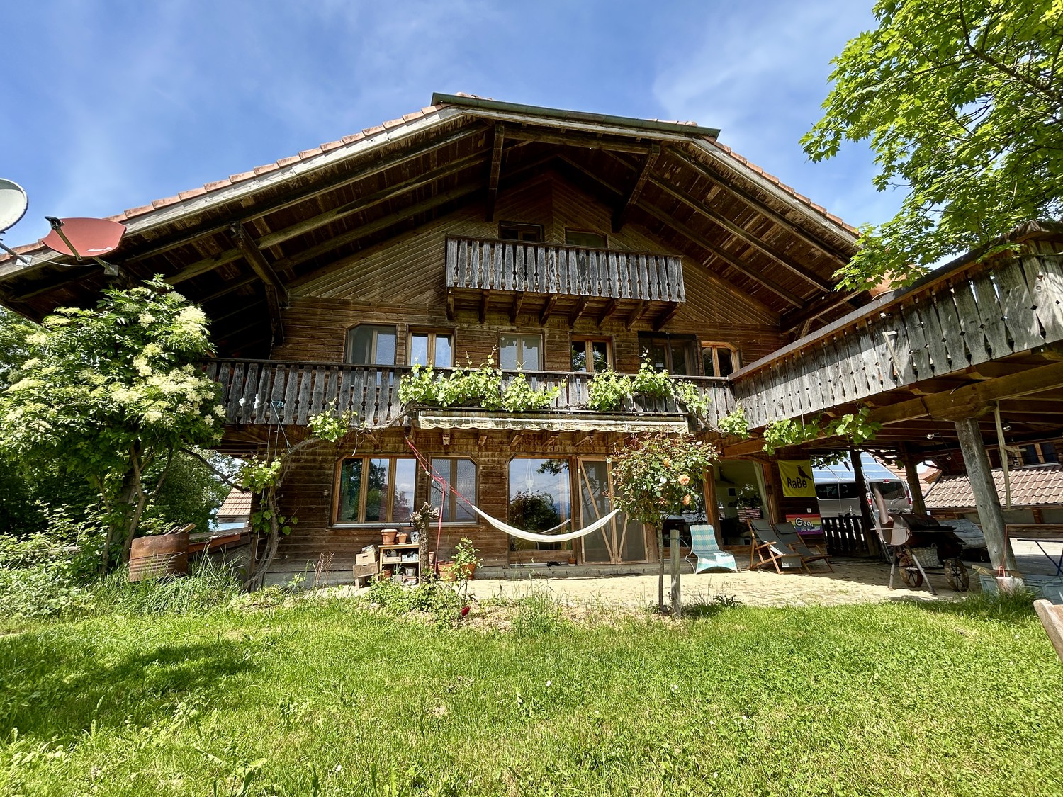 Die Wohnung befindet auf dem Hof Faver im Erdgeschoss und hat direkten Gartenzugang mit Sitzplatz. Im Haus gibt es sich eine weitere WG, eine Familie mit zwei kleinen Kindern und weitere Personen verschiedenen Alters. Wegen den Hofkatzen, ist es nicht ideal, wenn du Haustiere mitbringst.