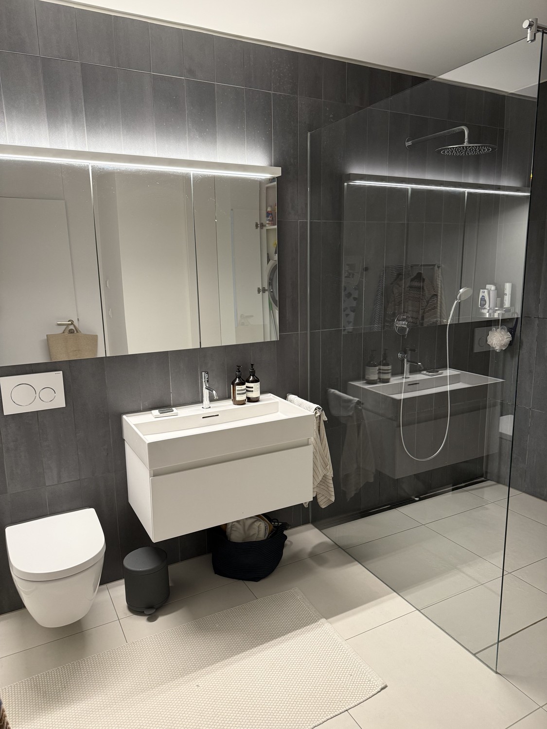 A high-quality, custom-made Poliform wardrobe is available in the bedroom and to be taken over by the new tenant (price to be agreed separately).