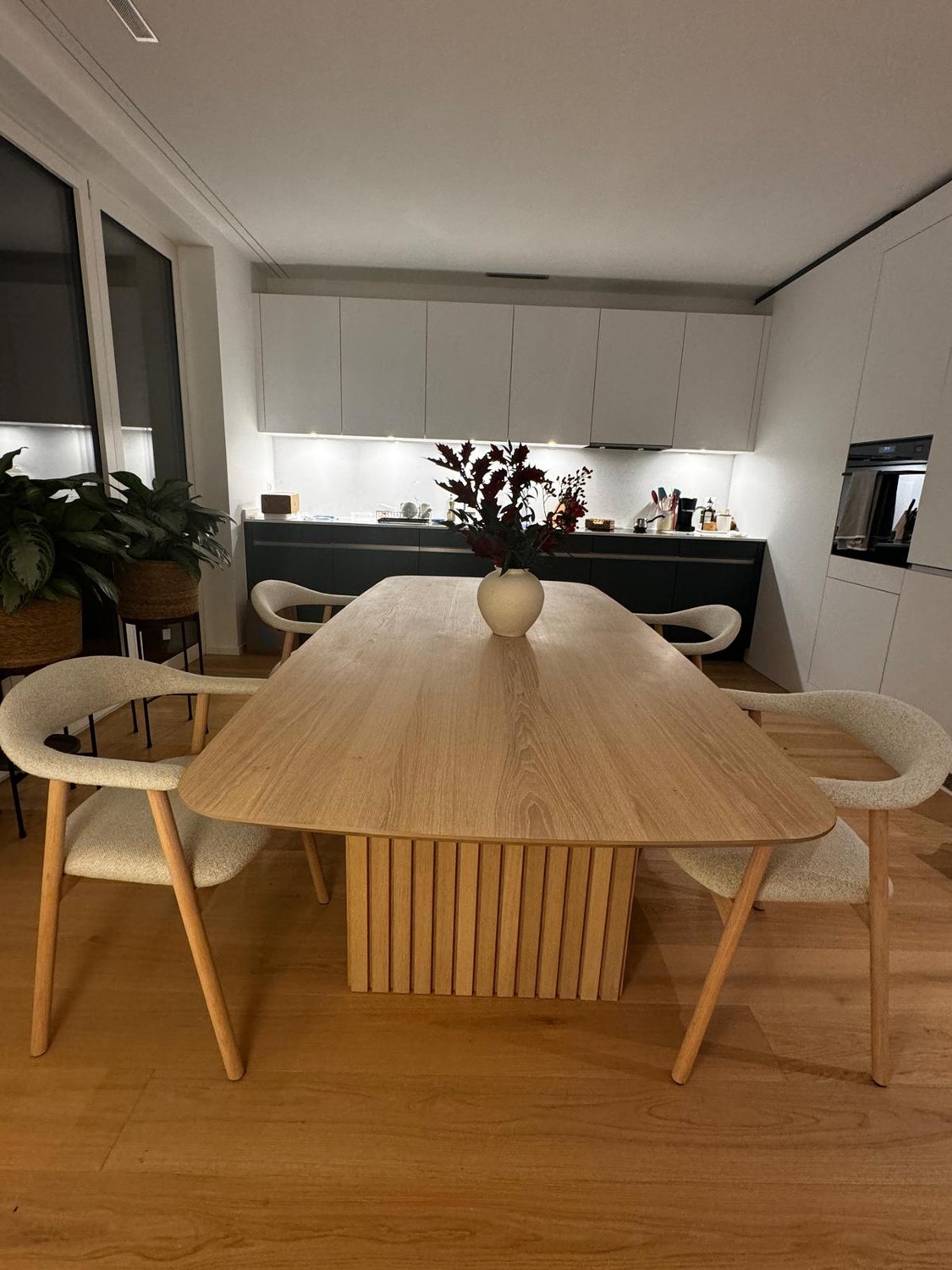 Open dining area connected to a modern kitchen