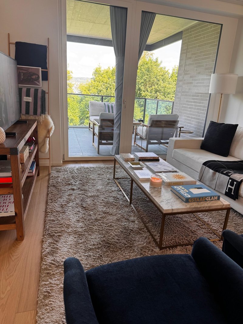 Bright living area with large floor-to-ceiling windows and access to the balcony