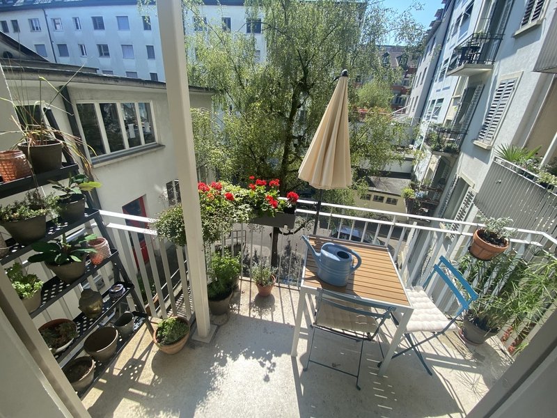 einen ruhigen, sonnigen Balkon Richtung Innenhof