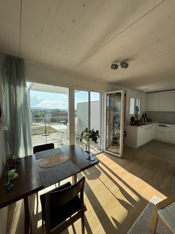 Beautiful modern 2 room apartment in with terrace, beautiful view and sunset close to Greifensee (10 mins by car) and Zürich (30 mins by public transportation) to sublet from 22.12.2025 to 04.01.2026underground park place