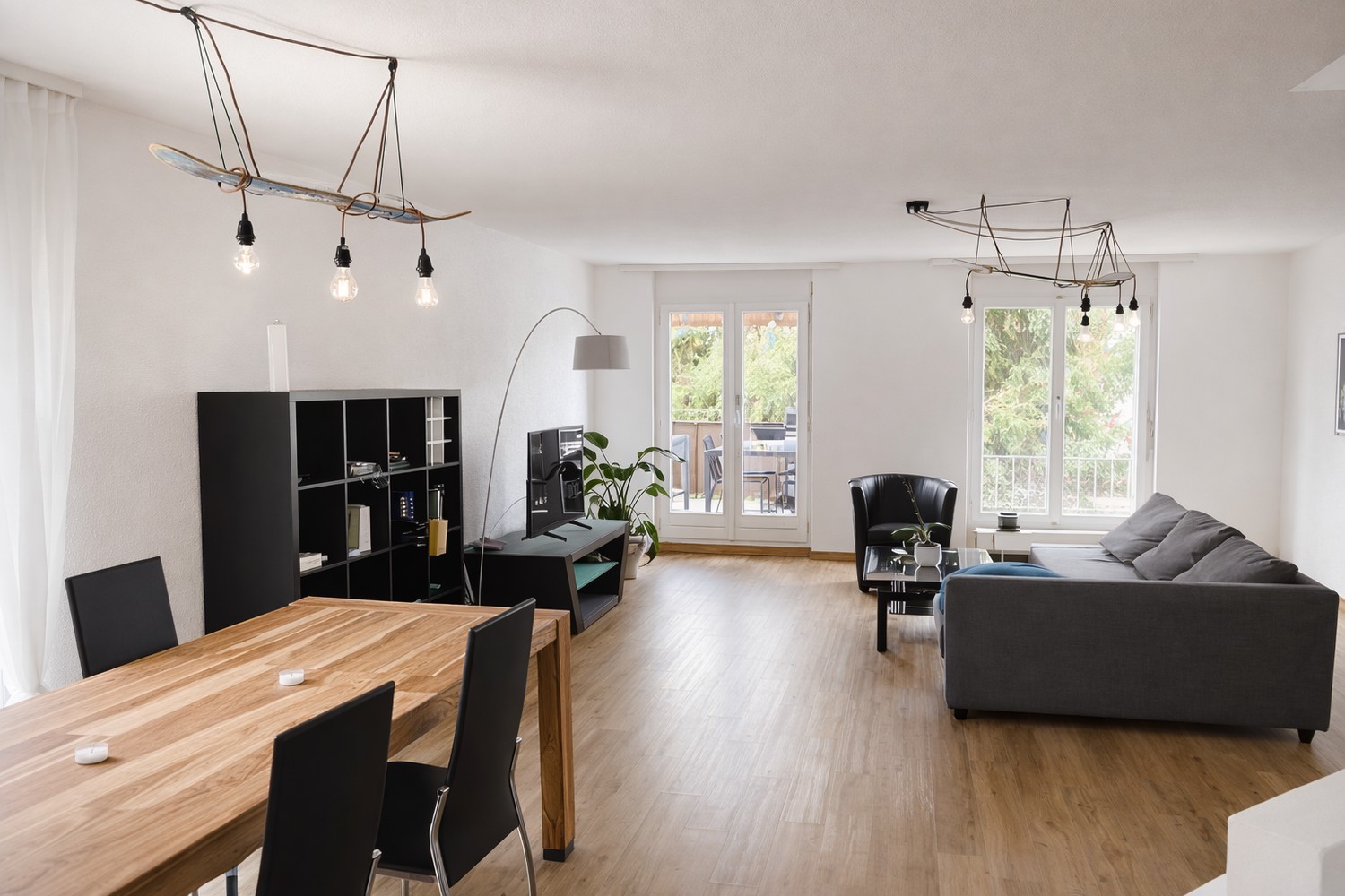 Grosszügiges Wohnzimmer (41 m²) mit Balkon, Kamin & Essbereich