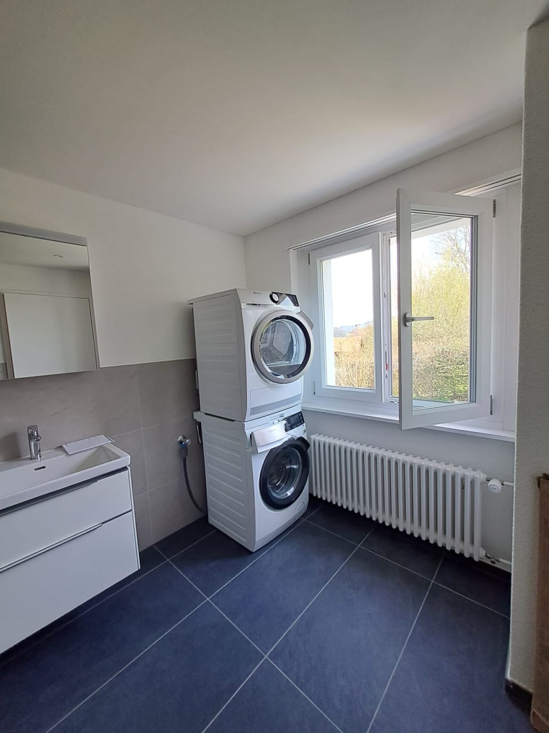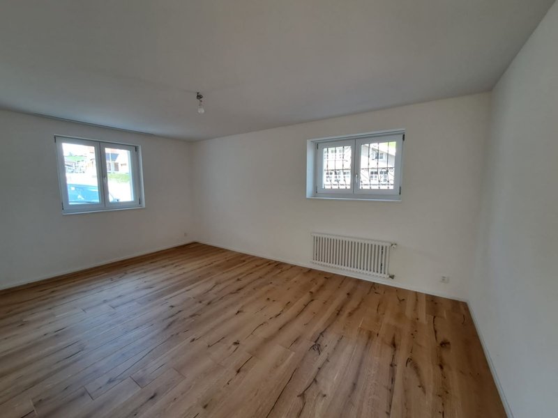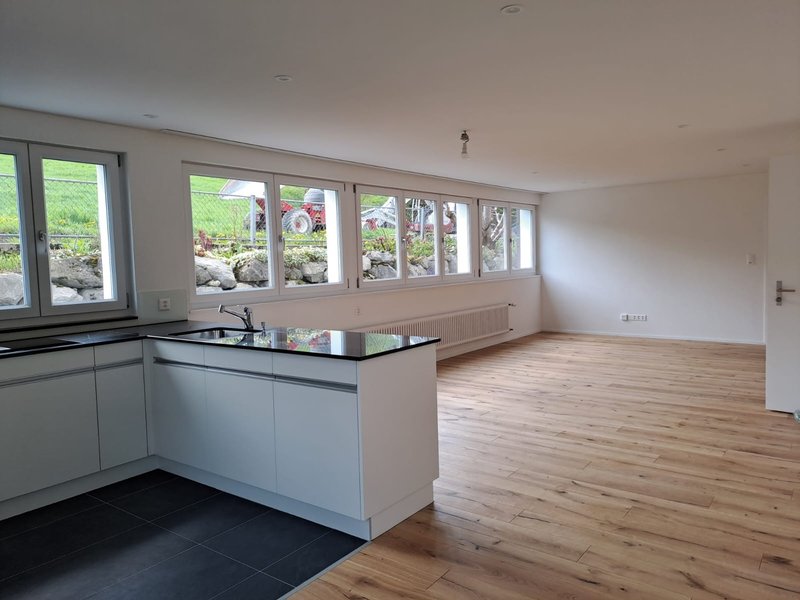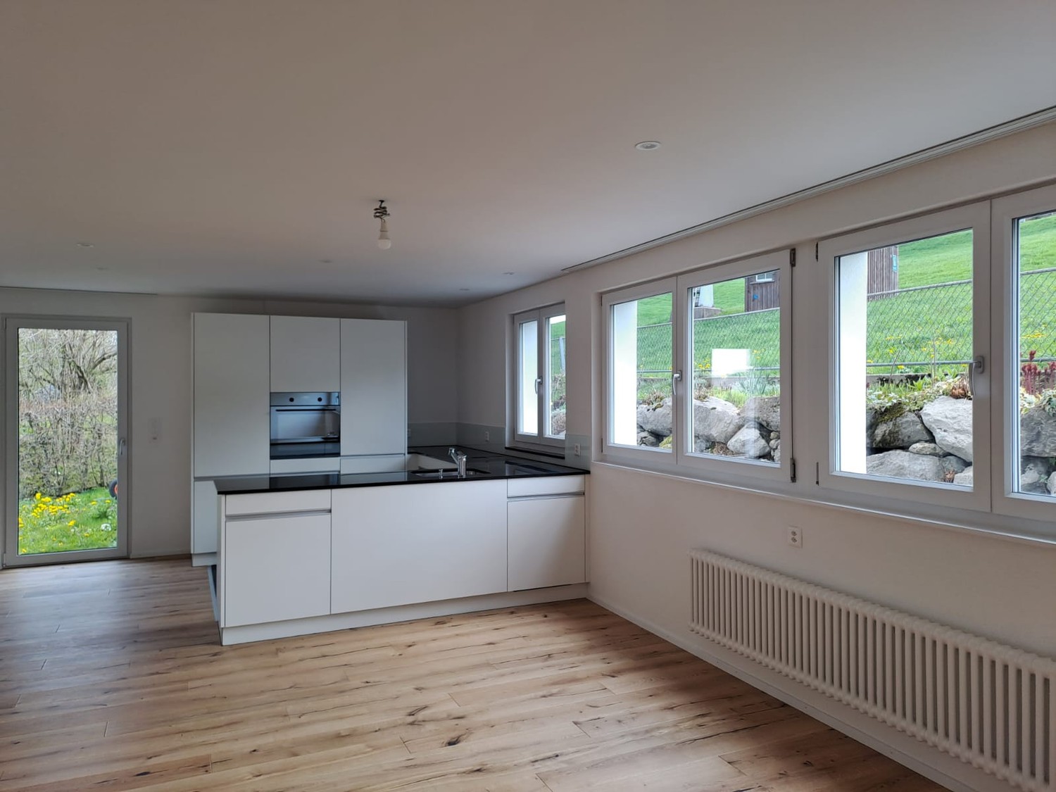 Die im Jahr 2023 neu erstellte 3.5-Zimmerwohnung liegt an ruhiger Lage und bietet aufgrund des hochwertigen Standards ein komfortables Wohngefühl. Die offene U-förmige Küche gliedert sich an den hellen Wohn- und Essbereich. Die Wohnung verfügt über zwei Schlafzimmer, ein Badzimmer mit begehbarer Dusche sowie Waschmaschine und Trockner. Der Umschwung von 80m² mit Garten und Grünfläche lädt bei sonnigen Tagen zum Verweilen ein und kann bei Interesse individuell gestaltet werden. Ein persönliches Kellerabteil sowie offener Nasskeller bieten zusätzlichen Stauraum.