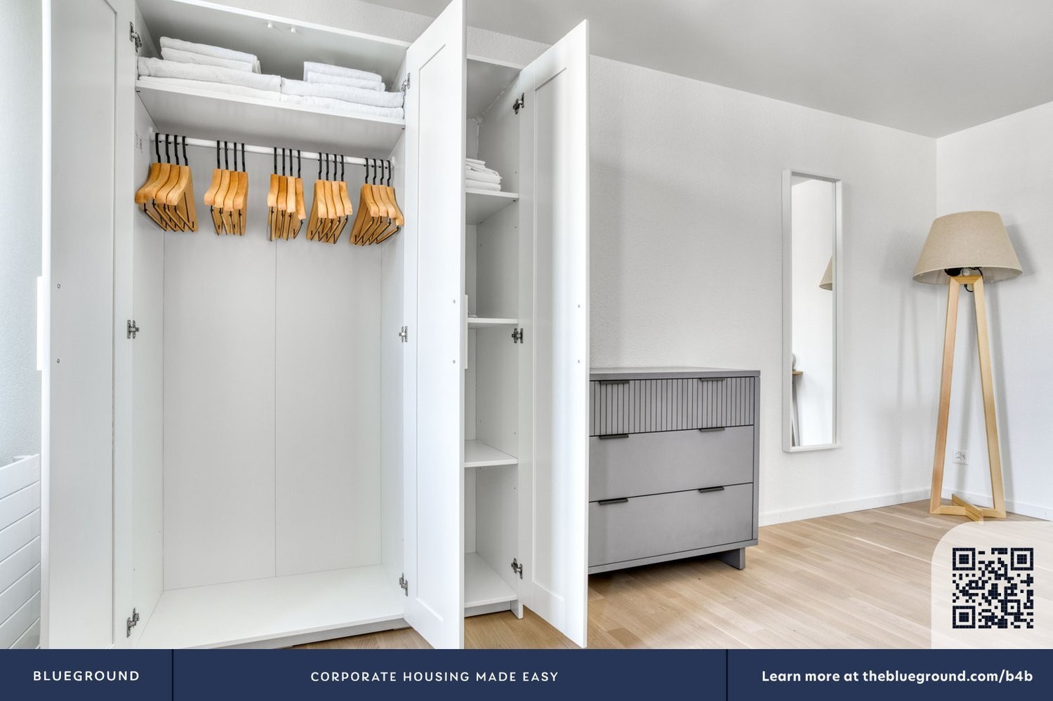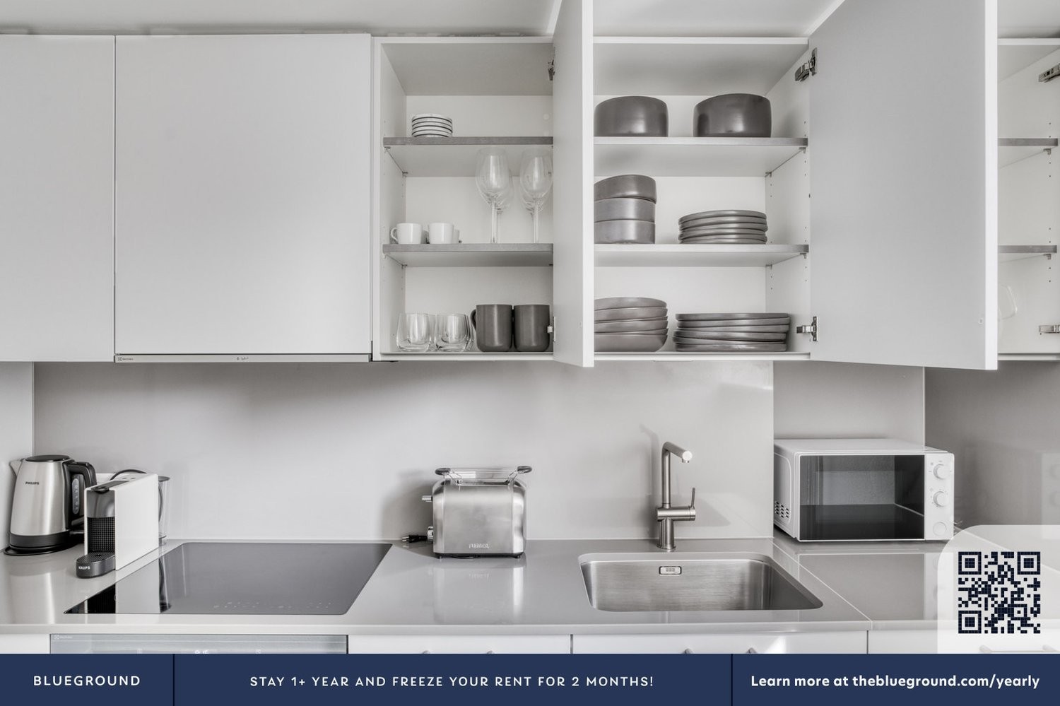 Dieses Blueground Wohnung bietet flexible Mietoptionen, sodass Sie es für einen Monat, ein Jahr oder länger buchen können.Haustiere sind willkommen, allerdings gelten Gewichts- und Rassenbeschränkungen, für die Gebühren anfallen können.Das Parken wird je nach Verfügbarkeit angeboten und ist gebührenpflichtig.Bitte beachten Sie, dass es sich um ein Gebäude ohne Aufzug handelt.Wir sind sehr stolz darauf, dass alle gezeigten Fotos in unseren eigenen Einheiten mit unserer tatsächlichen Einrichtung aufgenommen wurden. Das heißt, wir aktualisieren regelmäßig unsere Dekoration und Möbelanordnung, die von dem abweichen kann, was abgebildet ist.
