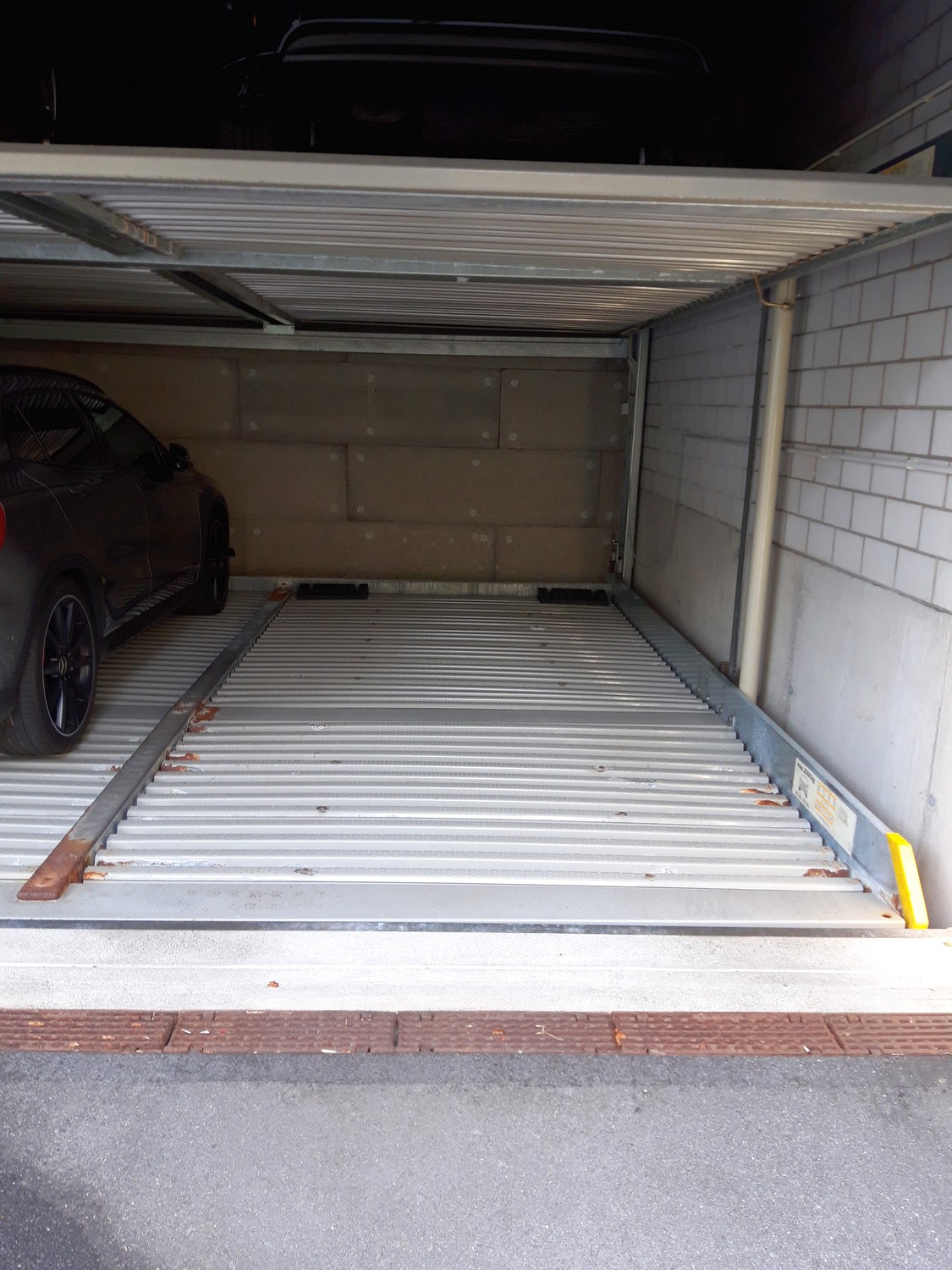 Autoeinstellplatz in Garage auf Autolift (max. Höhe 1.80m). Tor kann mittels Handsender fernbedient werden.